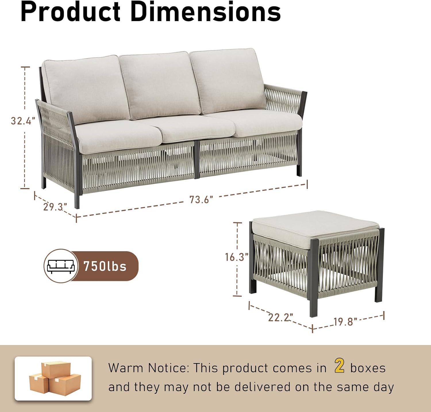 - Durable and Easy-to-Maintain Fabric: The cushions are crafted from Olefin fabric, offering 800 hours of UV protection and water resistance, making this outdoor couch ideal for all-weather use. The covers are removable and washable, featuring hidden zippers for easy cleaning. Enjoy a low-maintenance patio set that stays fresh and inviting throughout the seasons