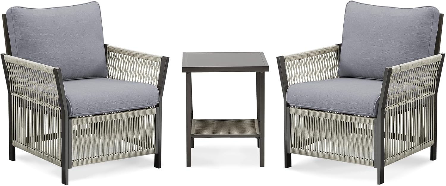 Patio Furniture Wicker Outdoor Conversation Set, 3-Piece All Weather Patio Furniture Rattan Rocking Sets with Removable Cushions & Side Table for Backyard, Balcony and Deck, Dark Grey