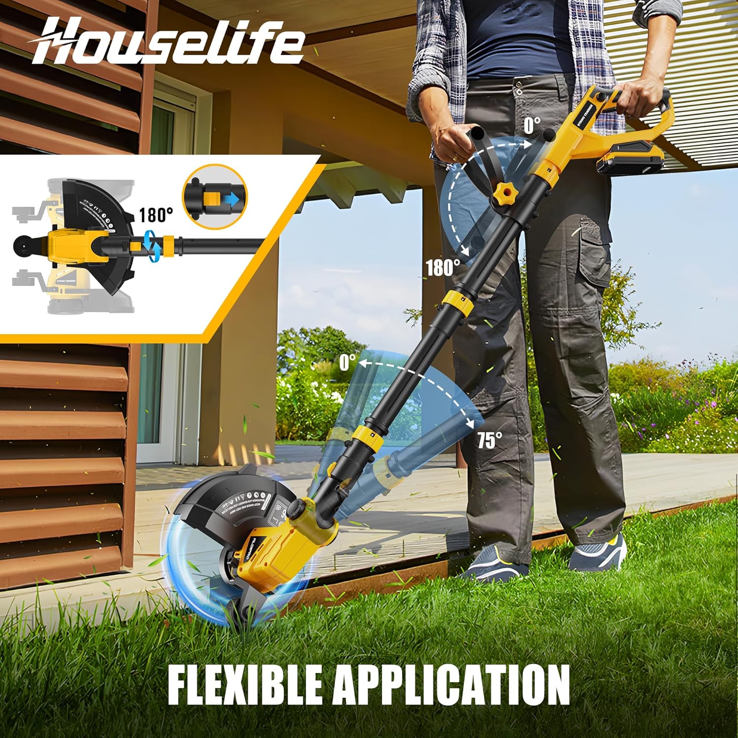 - Cordless String Trimmer: This cordless weed trimmer 20v features an 8500 RPM copper motor for powerful, quiet performance. Its adjustable handle, cutting angle, and rotatable pole adapt to any task, while the automatic line feed ensures uninterrupted trimming. With 3-in-1 functionality (trimmer, edger, mower), it handles diverse gardening needs. The detachable design saves space and allows height customization for comfort. Ideal for efficient, versatile lawn care