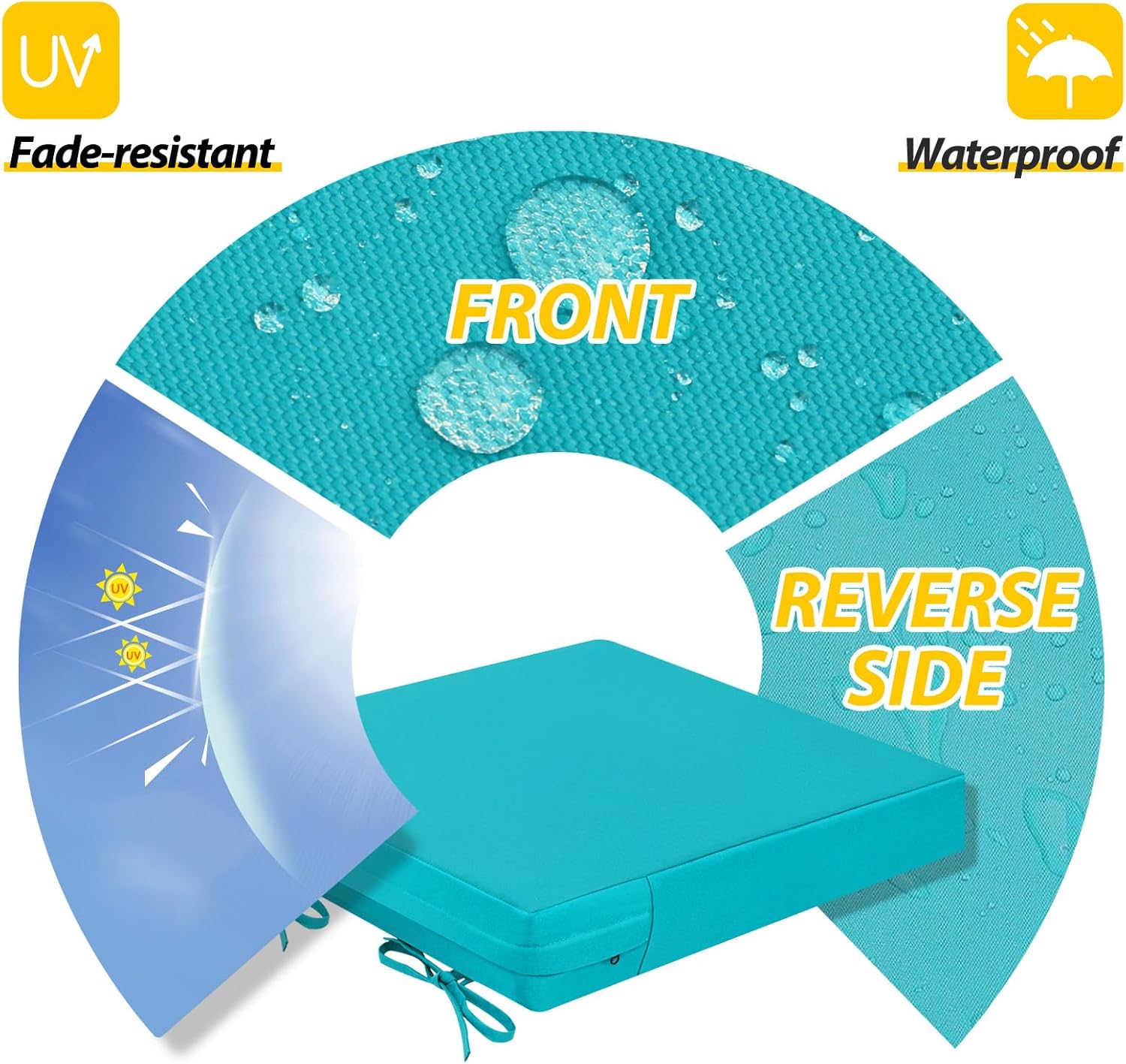 • Non-slip Ties and Piped Edge: The two non-slip ties can be fastened to your furniture to keep the outdoor cushion in place