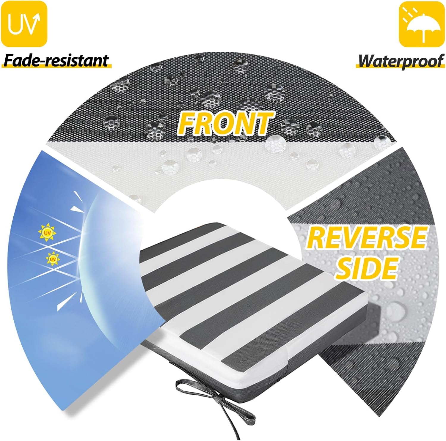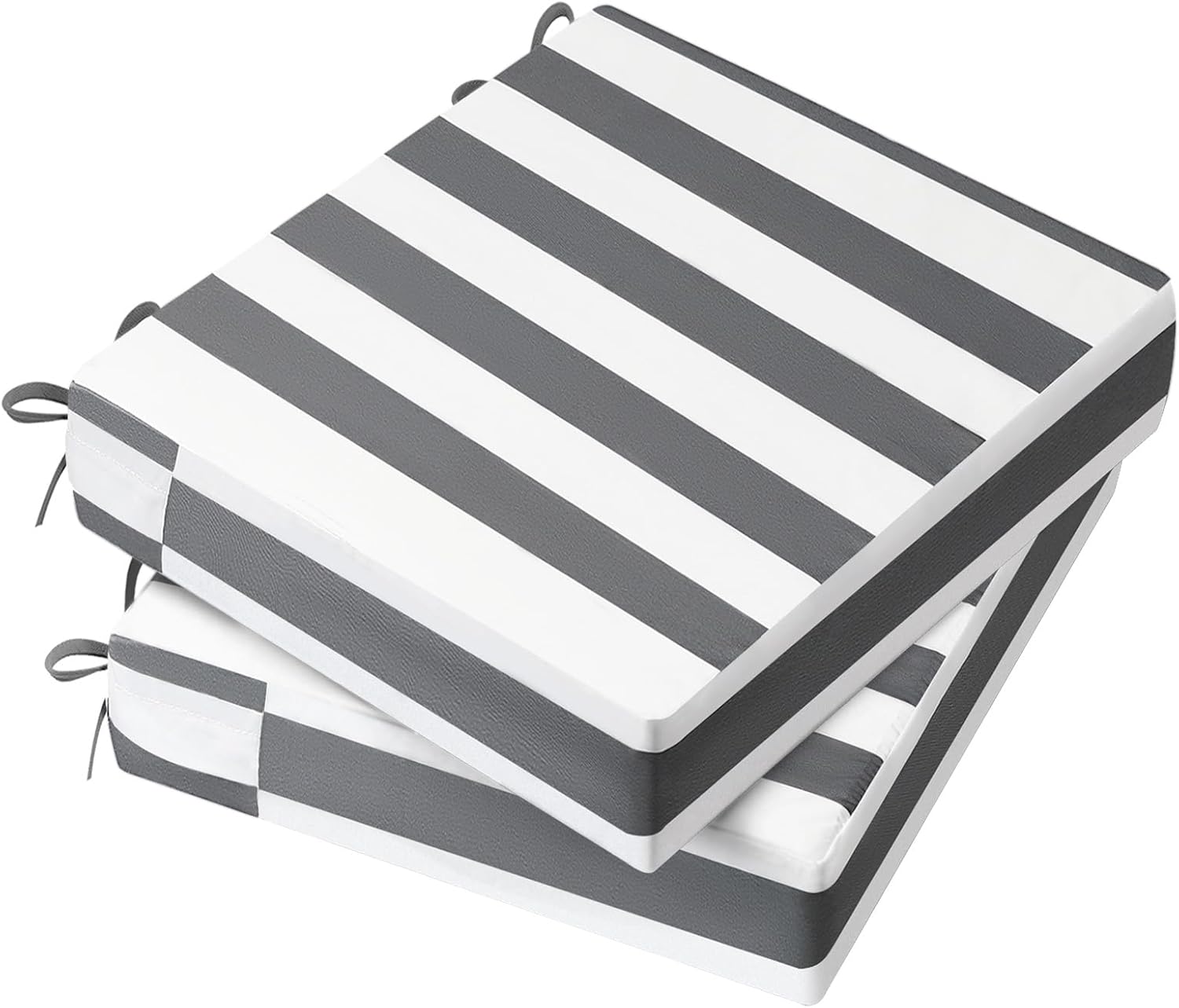 AAAAAcessories Outdoor Seat Cushions for Chairs, Waterproof, Fade-Resistant Patio Furniture Replacement Cushions, 20" x 18" x 3", Set of 2, Gray Cabana Stripe