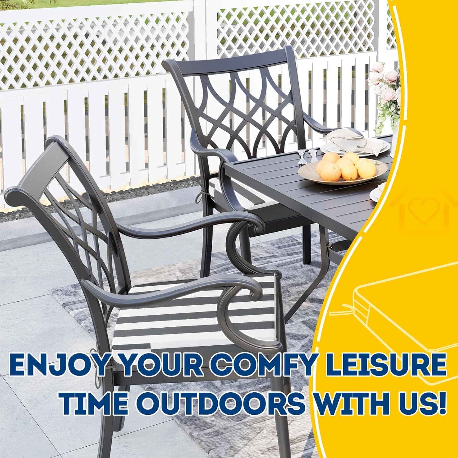 • Wide Use & Tips: These outdoor dining chair cushions fit pools, patios, balconies, decks, backyards, and gazebos. Foam inserts and covers are packed separately in bags and placed in one box—check all parts. Easy assembly required