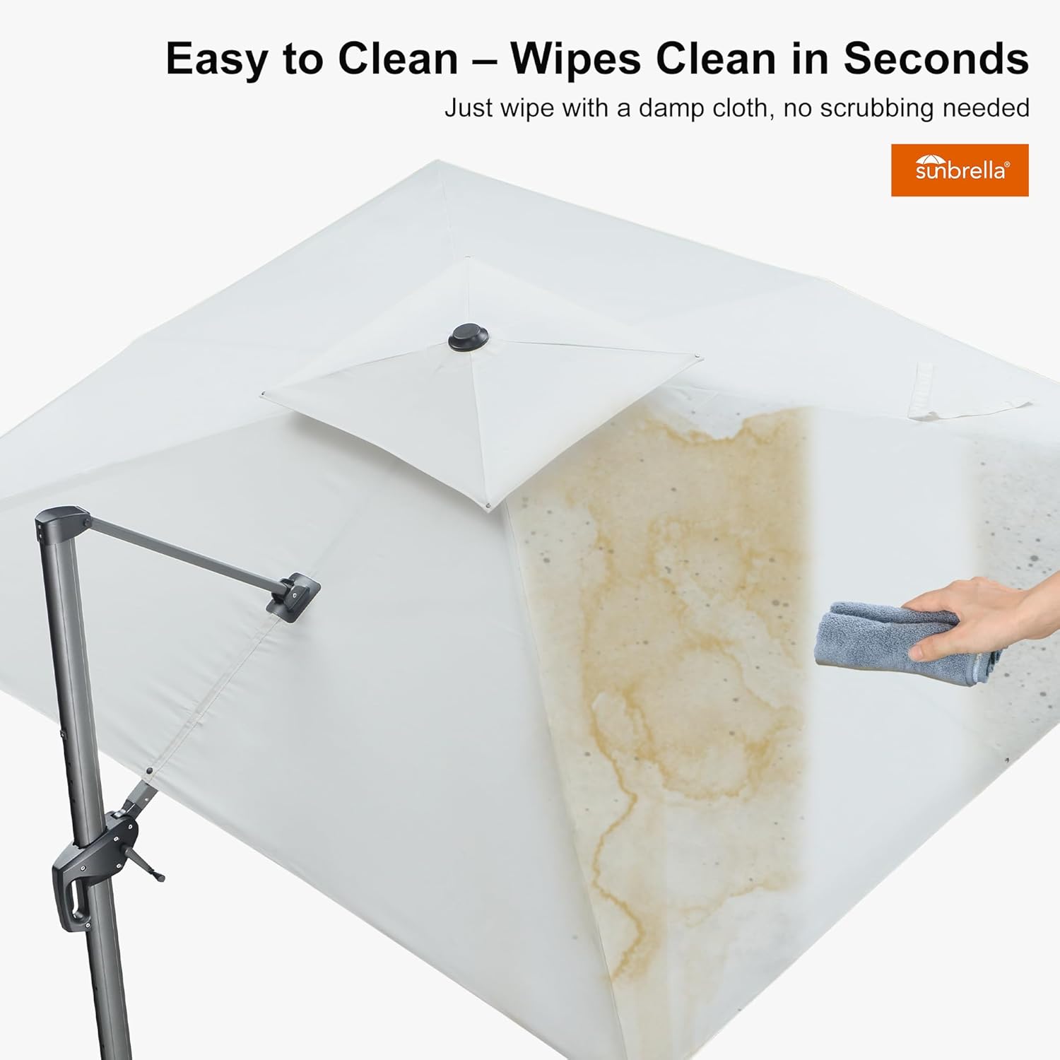 - Superior UV Protection: Featuring industry-leading fabric, this cantilever umbrella blocks over 98% of UV rays to effectively reduce skin cancer risks. 5 years of fade resistance, water and stain resistance.