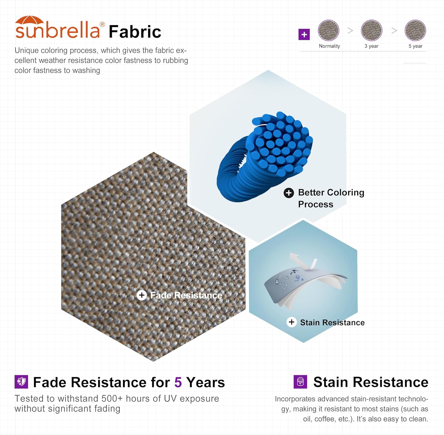 - Superior UV Protection: Featuring industry-leading fabric, this cantilever umbrella blocks over 98% of UV rays to effectively reduce skin cancer risks. 5 years of fade resistance, water and stain resistance.