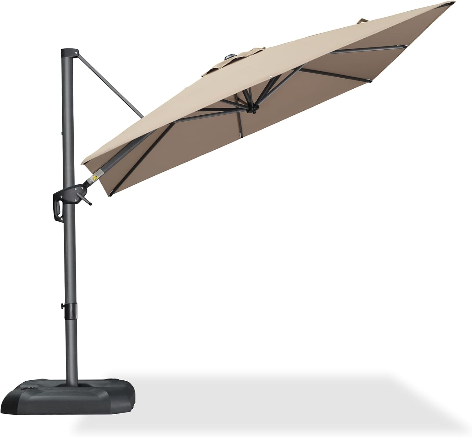 - The crank system of this cantilever umbrella makes it easy to raise and lower the canopy, the unique handle design also makes tilting the umbrella effortless, foot pedal allows for complete 360 degree rotation