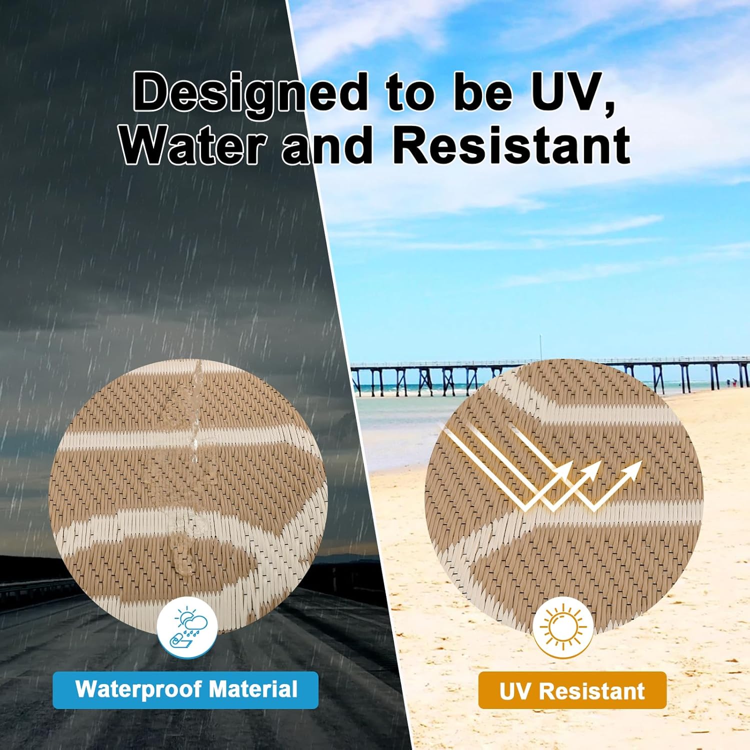 - Premium Material Outdoor Doormat: This reversible outdoor doormats are made from high quality recycled plastic straws and be woven tightly, durable enough, no fade, water resistant. It's soft and comfortable to walk on barefoot.Plus, the high-end UV coating and edge heat treatment technology prevent fading and sun damage without worrying about wear and tear.