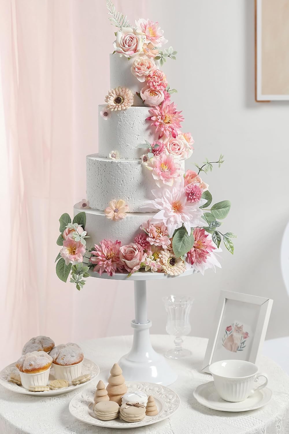 YYHUAWU Fake Flower Heads Mini Pink Artificial Flower Faux Dahlia Rose Flowers Multicolor Silk Daisy Flower Heads for Craft Garland Wedding Bridal Baby Shower Home Party Decoration DIY Cake Decor