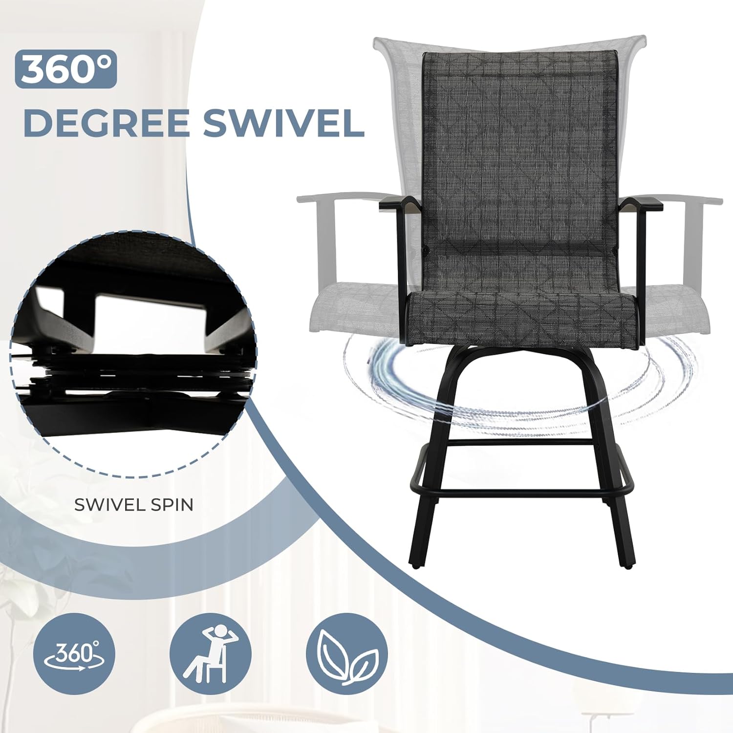 - Functional Bar Stools: The balcony bar chair with 360 ยฐ free rotation design, combined with the reinforced design of double support rods at the bottom, can enjoy the outdoor scenery 360 ยฐ freely
