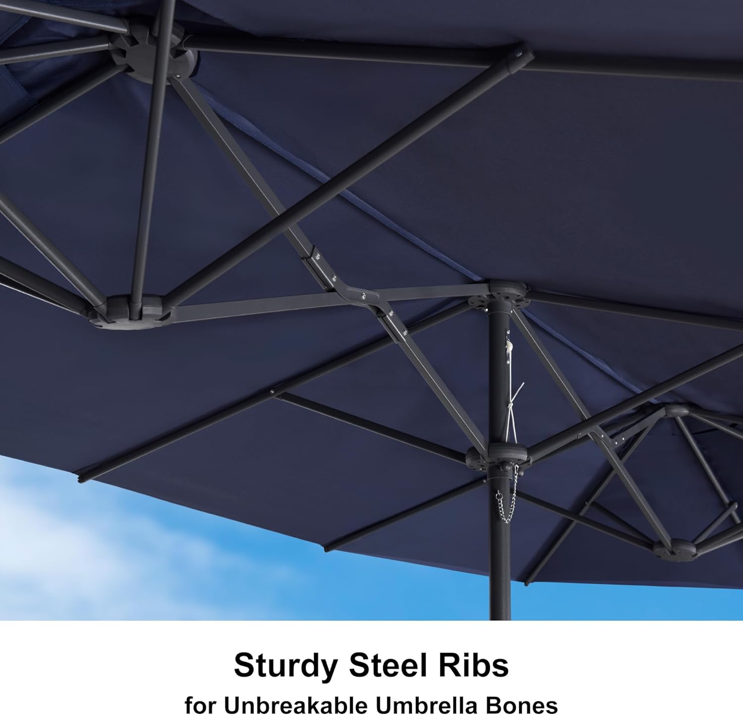 PURPLE LEAF 13ft Double-Sided Patio Umbrella with Base Included Market Rectangle Umbrella Outdoor Table Umbrella with Crank for Pool Garden Deck, Navy blue