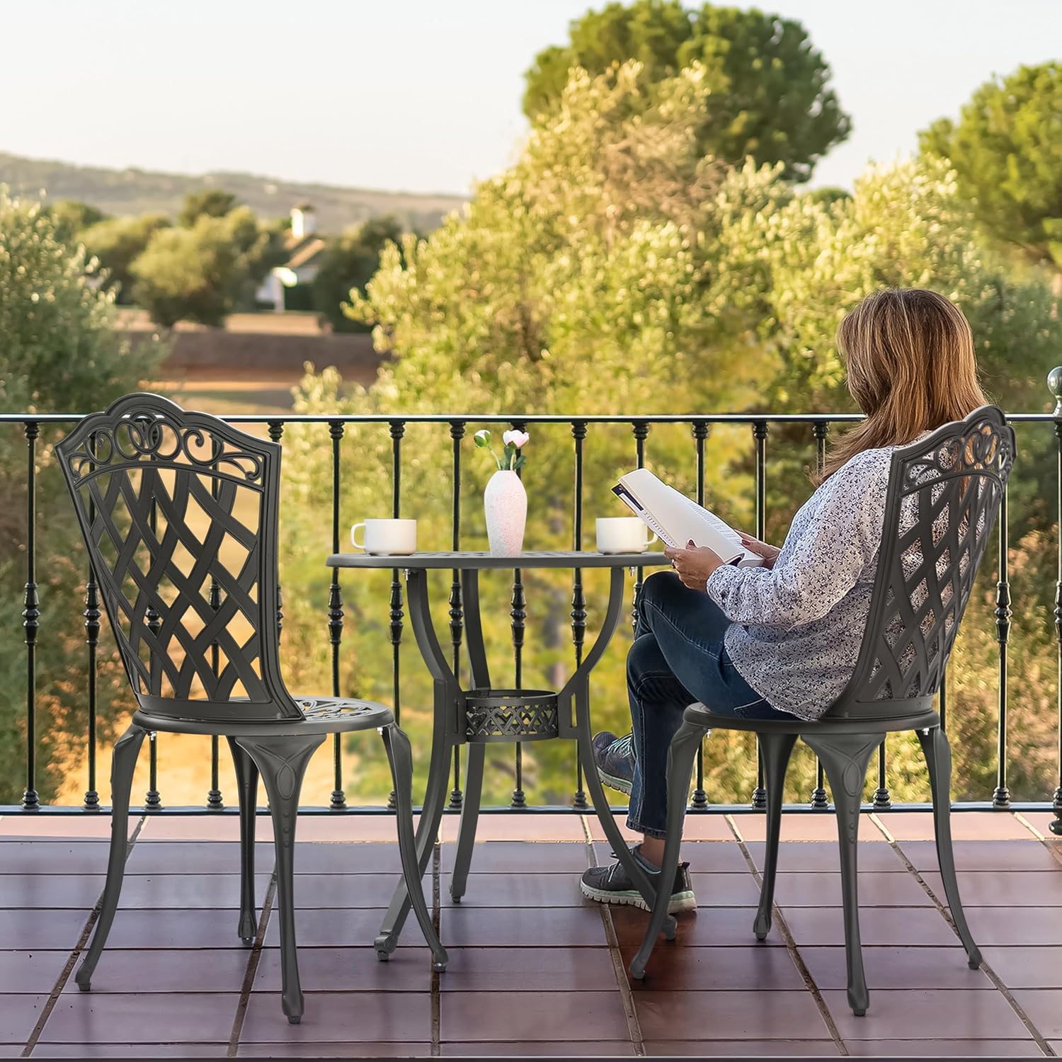 - WEATHER-RESISTANT: This patio bistro set is made from sturdy and solid cast aluminum, so itโs resistant to rust, weather, fade, chip or crack. With durable finish and carefully burnished spotwelds, it can last season after season