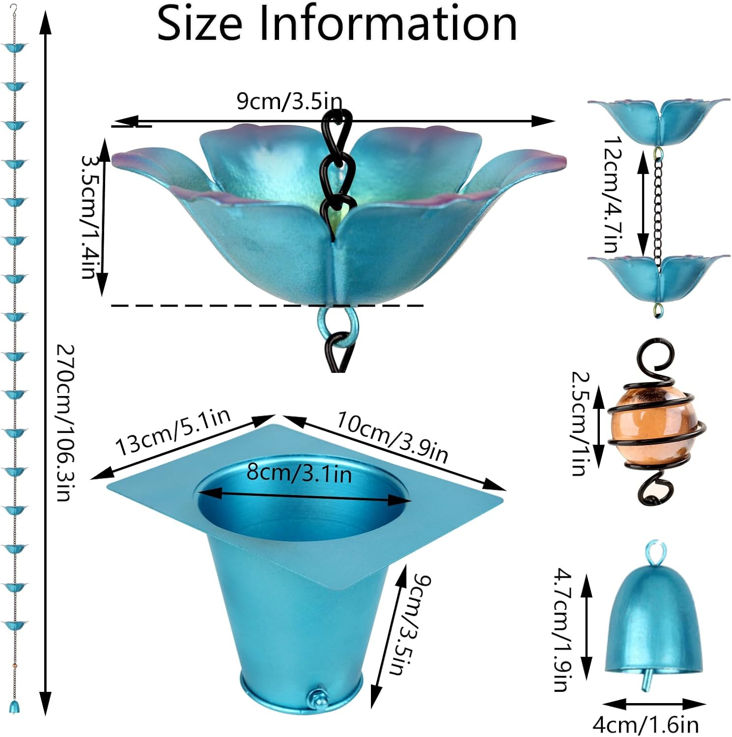 - PREMIUM QUALITY MATERIAL: The rain chain is made of durable iron material to ensure stability and durability in all weather conditions. Whether it's direct sunlight or rain, this rain chain will stand up to the elements and won't fade or break over time.