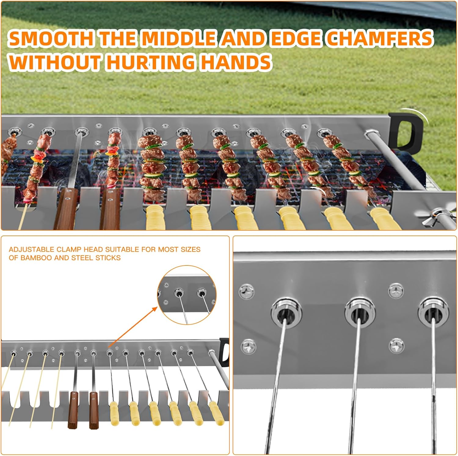 - 1、Widely used: The automatic rotary barbecue grill is designed with adjustable width, which is simple and fast to install. The width can be adjusted to 20 inches at most according to your own needs. and the length can be purchased according to the size. There are two models on sale: G500 and G700. G500 has 8 holes and can bake 8 skewers at the same time. It is equipped with 2 large stainless steel skewers, 8 small stainless steel skewers and 20 bamboo skewers. Suitable for all kinds of open barbecue grills.