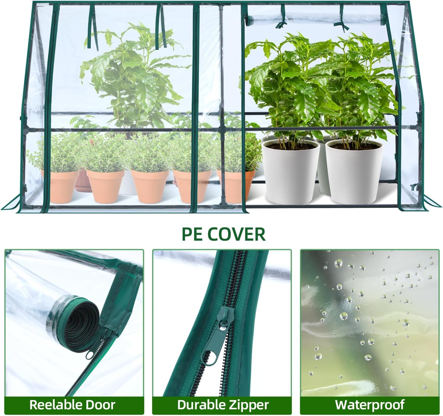 - Warm & Ventilated: 2 double zippered roll-up doors allow for easy access, making it easy to regulate external airflow to keep the plants warm and provide optimum air circulation for the plants