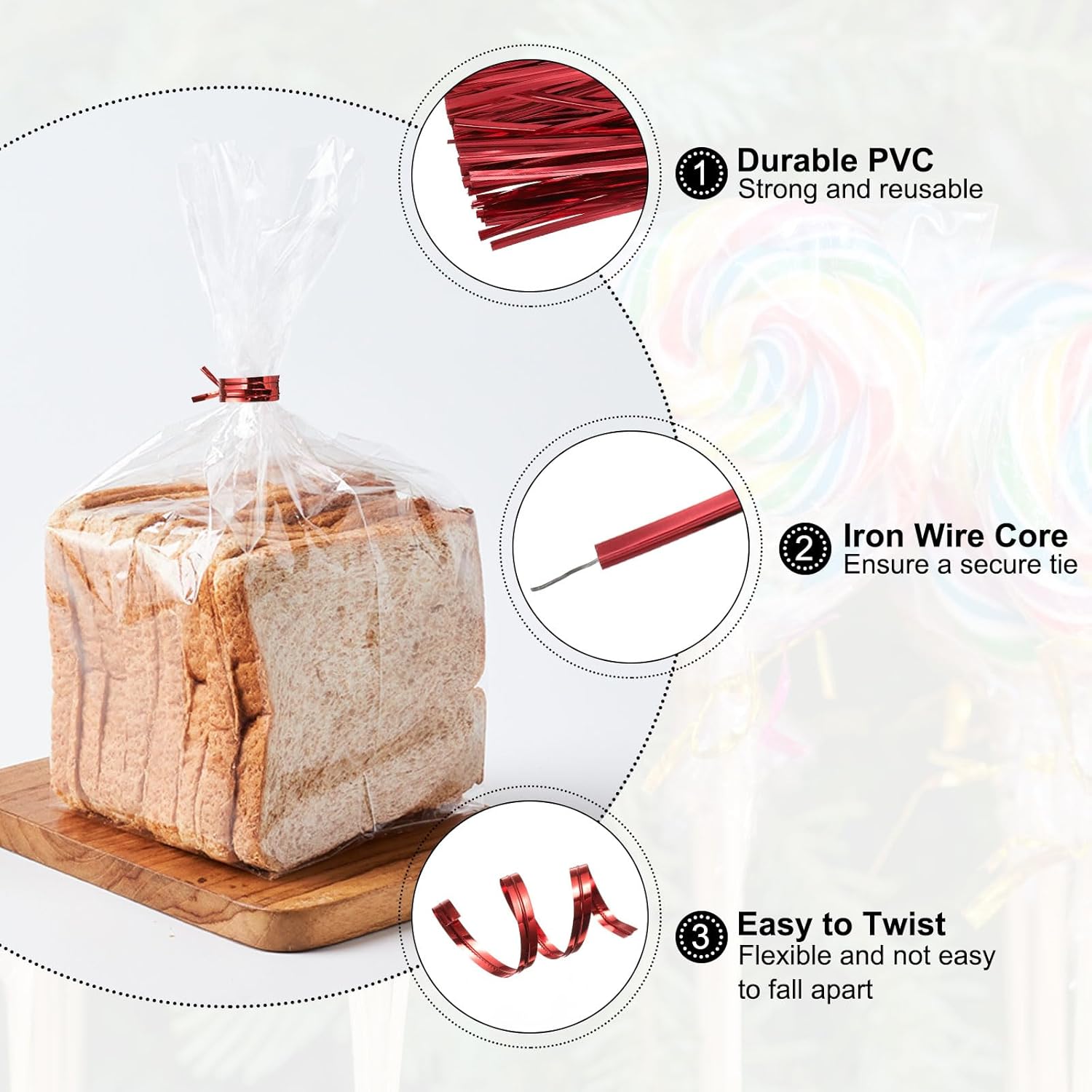 HARFINGTON 800pcs Bag Twist Ties 6" Reusable Plastic Metallic Twist Ties Wire Cable Ties for Party Bread Candy Cake, Red