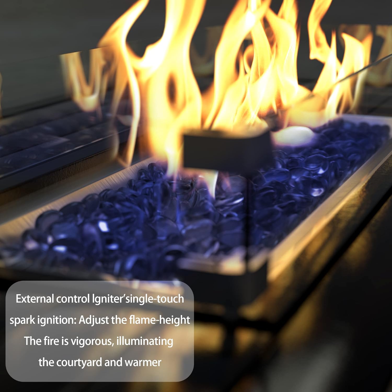 - Glass Windshield: Ignite a warm, inviting flame over the sparkling glass rocks and watch it burn all night, as an included glass wind guard adds elegant appeal while keeping the fire going even during a breeze. The Outdoor Rattan Fire Pits Table provides heat to whoever is around your fire table, we wonโt leave you out in the cold