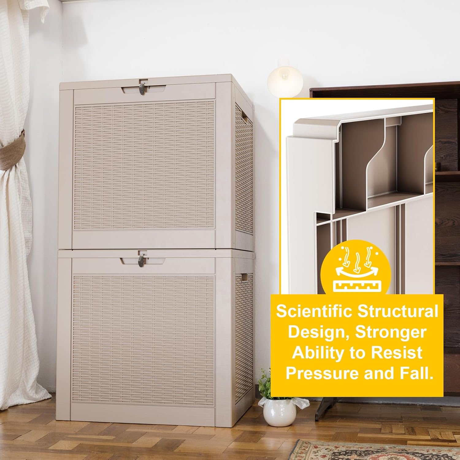 - EASY ASSEMBLY: The outdoor storage box adopts a Clip design, ensuring effortless assembly. A single person can easily put all panels together without requiring any tools