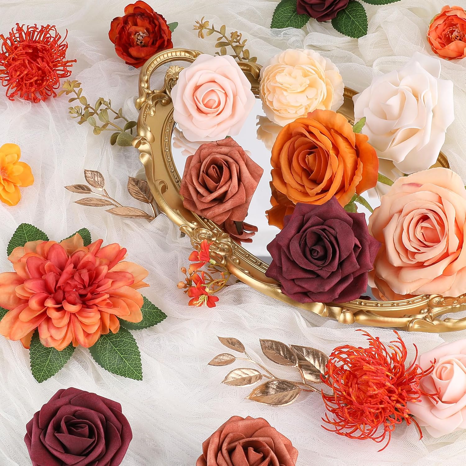 AGIRL Artificial Flowers Combo Silk Mix Purple Fake Flower with Stems for DIY Wedding Bouquets Centerpieces Arrangements Table Chair Decor Baby Shower Home Decor (Terracotta)