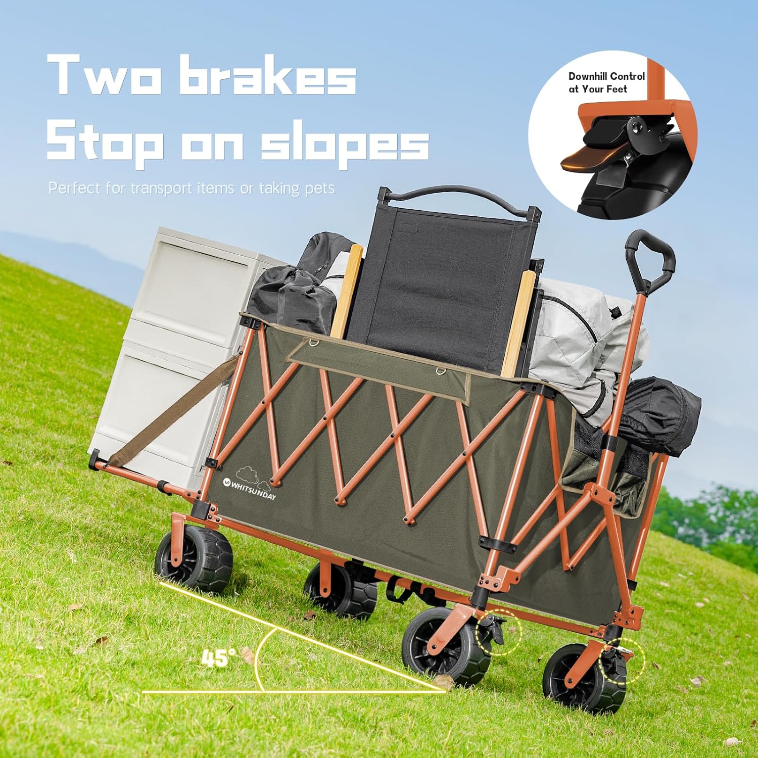 - 【Collapsible Folding Design】 No assembly required. With an internal pull rope design, the folding wagon cart can be folded effortlessly in one step, saving time and space.
