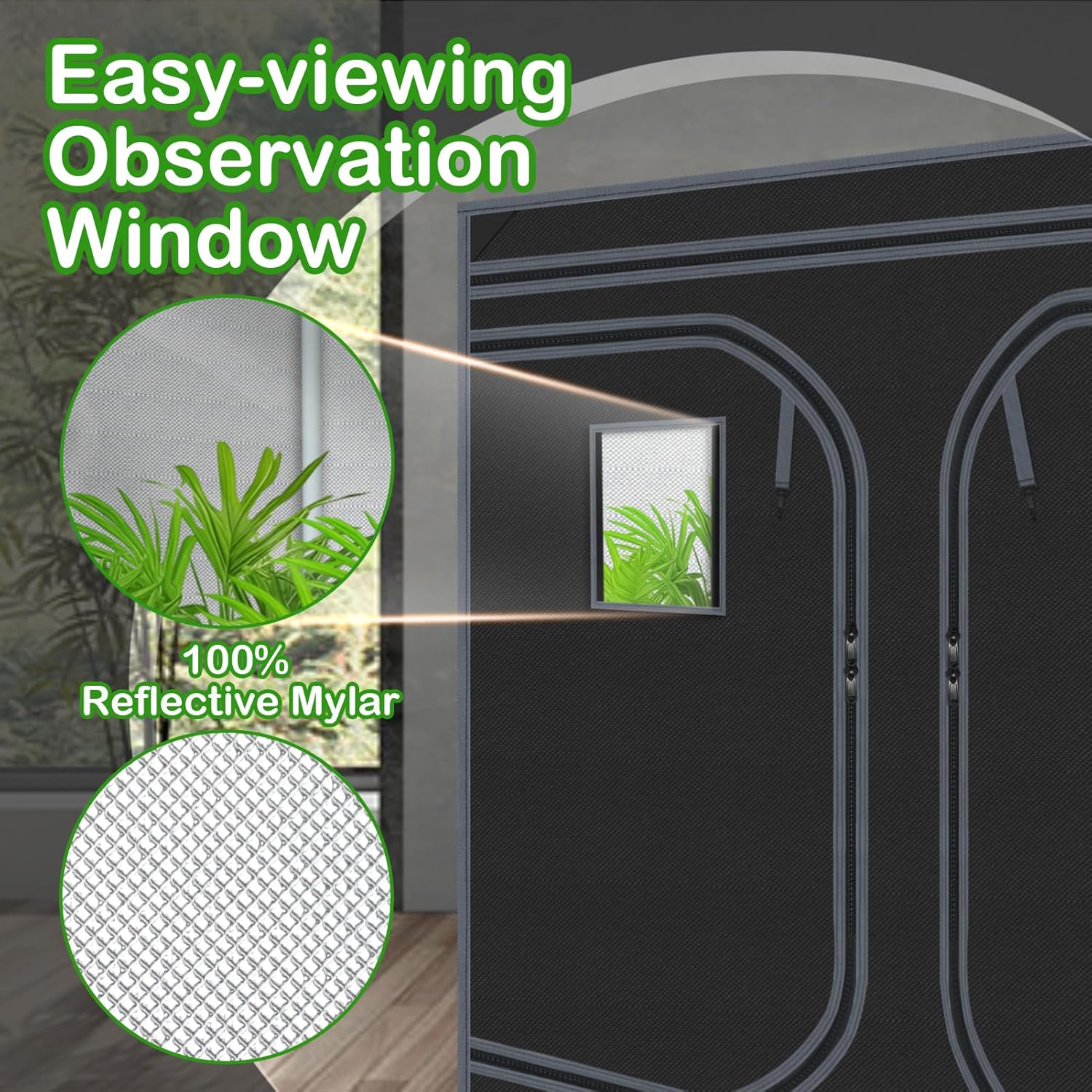 - Effective Light Proof----Our grow tent with extra-thick Mylar, heavy-duty zipper and double stitch guarantee the tent blocks all light from escaping. On the interior, a 98%-reflective mylar lining makes your lighting set up more efficient at any power configuration.