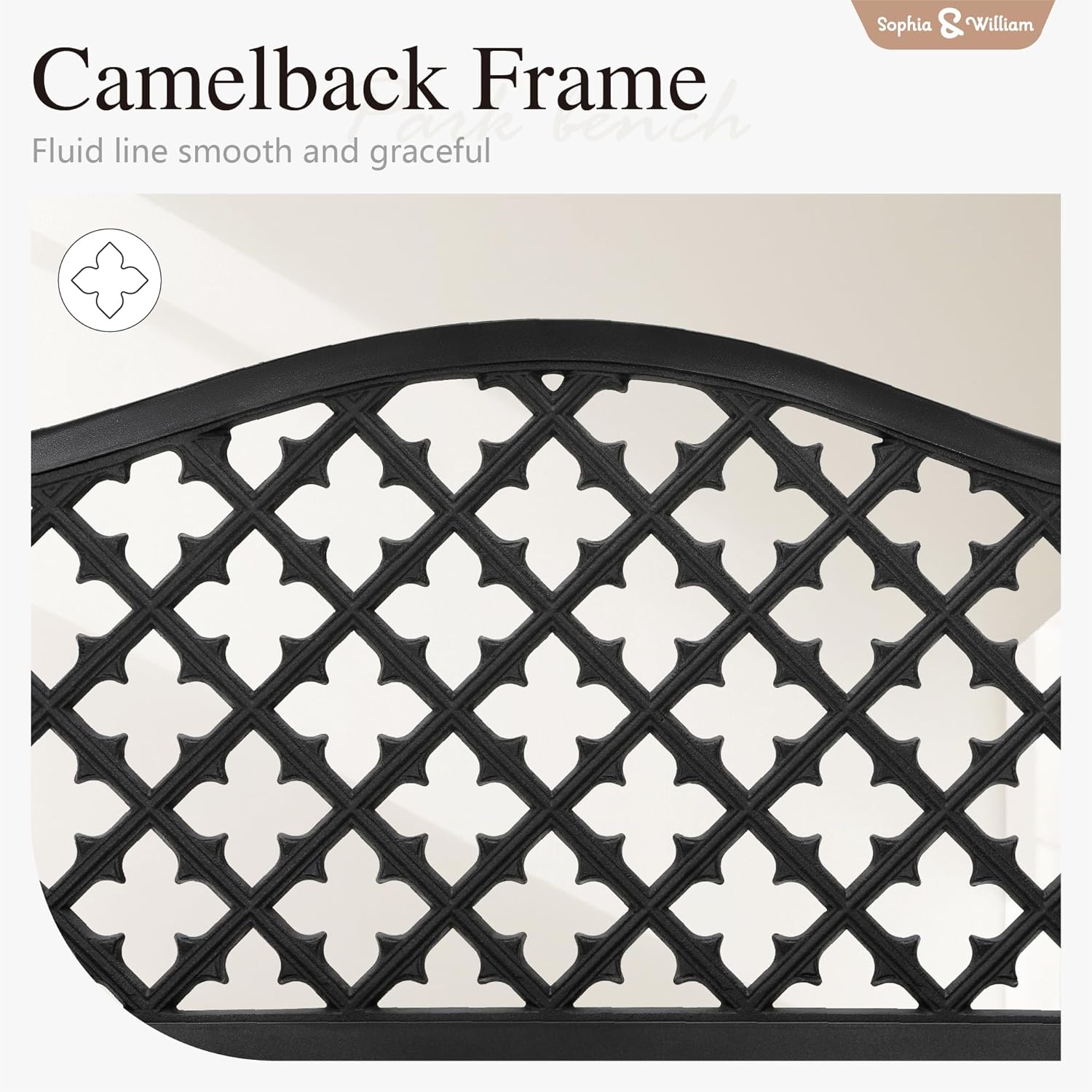 Sophia & William Outdoor Bench, 50 inches Metal Garden Bench, Cast Iron Park Benches for Outside with Floral Backrest and Straight Legs for Porch Yard Lawn Deck,Black