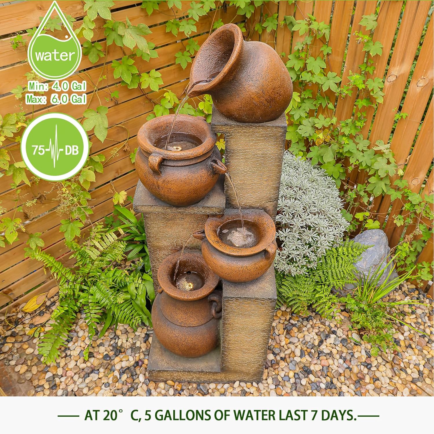 - Durable Design with Safety Guarantee: The Tall garden water fountain is made of High-quality resin materials, which is resistant to heat, wind and rain, without worrying about short-term breakage. UL Certification, 30 Days Hassle-Free Returns, 1-Year Warranty. If You Have Any Problems About The Yard Water Fountain Or Need Any Other Support, Please Feel Free To Contact Us Through Amazon, We Will Respond Within 16 Hours.