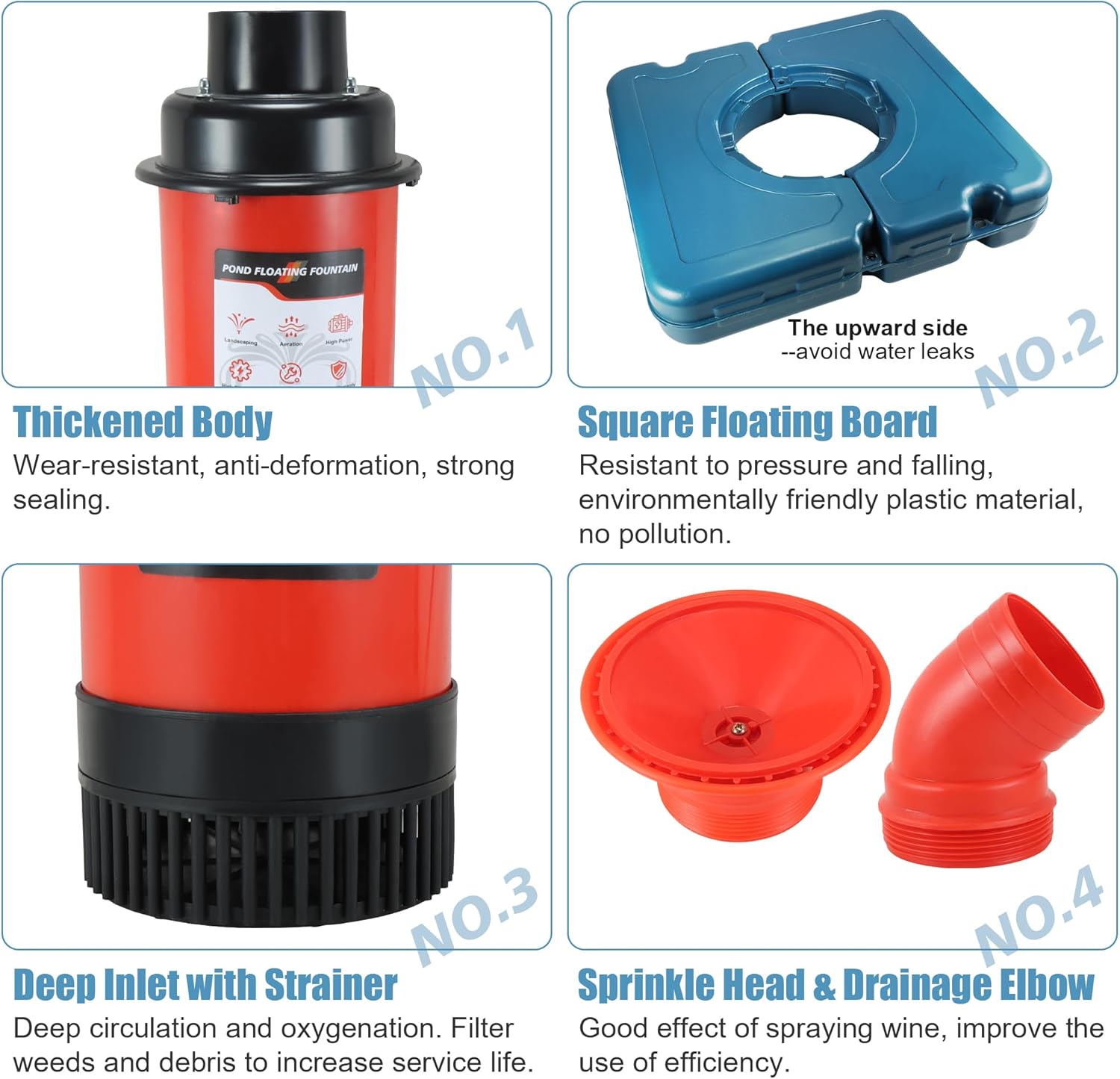 - RELIABLE PROCESS & FEATURES: Floating fountain system designed to aerate and decorate large bodies of water, with low-profile float design that remains balanced for easy upright positioning in water. The fountains promotes a clear and clean pond while removing most surface debris to ensure a picturesque lake or pond, and can dissolved oxygen balance, purify water quality, increase water circulation, improve water ecolog of the lake, etc