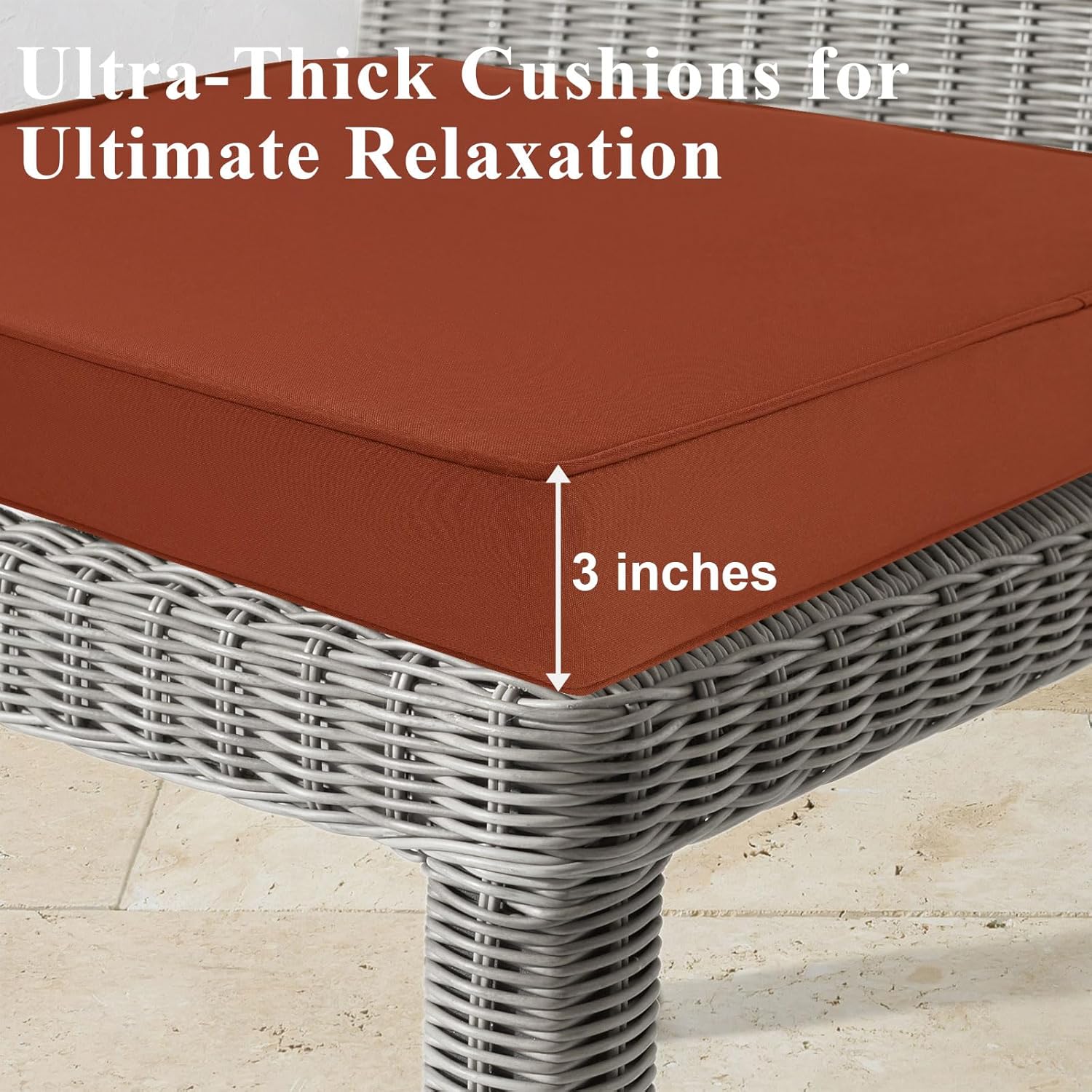 - HIGH RESILIENCE FOAM SUPPORT:We use thicker 3 inch high resilience premium foam, super soft and comfortable. Premium sofa level hardness provides excellent elastic support and effectively relieves pressure on your body. Reduce the pain of lumbar, back and hip. MJIAIDEA Outdoor furniture cushions are not easy to deform after sitting for a long time