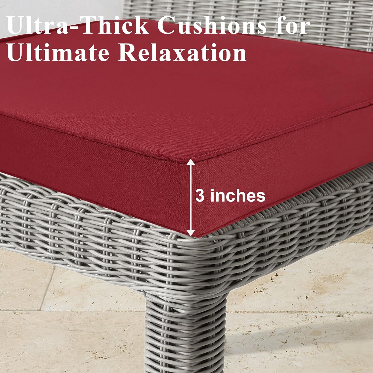 Outdoor Chair Cushions Set of 2 for Patio Furniture 18.5x16x3 Inch Waterproof Patio Chair Cushion 3 Year Color Fastness Rectangle Elastic Foam Garden Couch Pads with Ties and Handle,Red