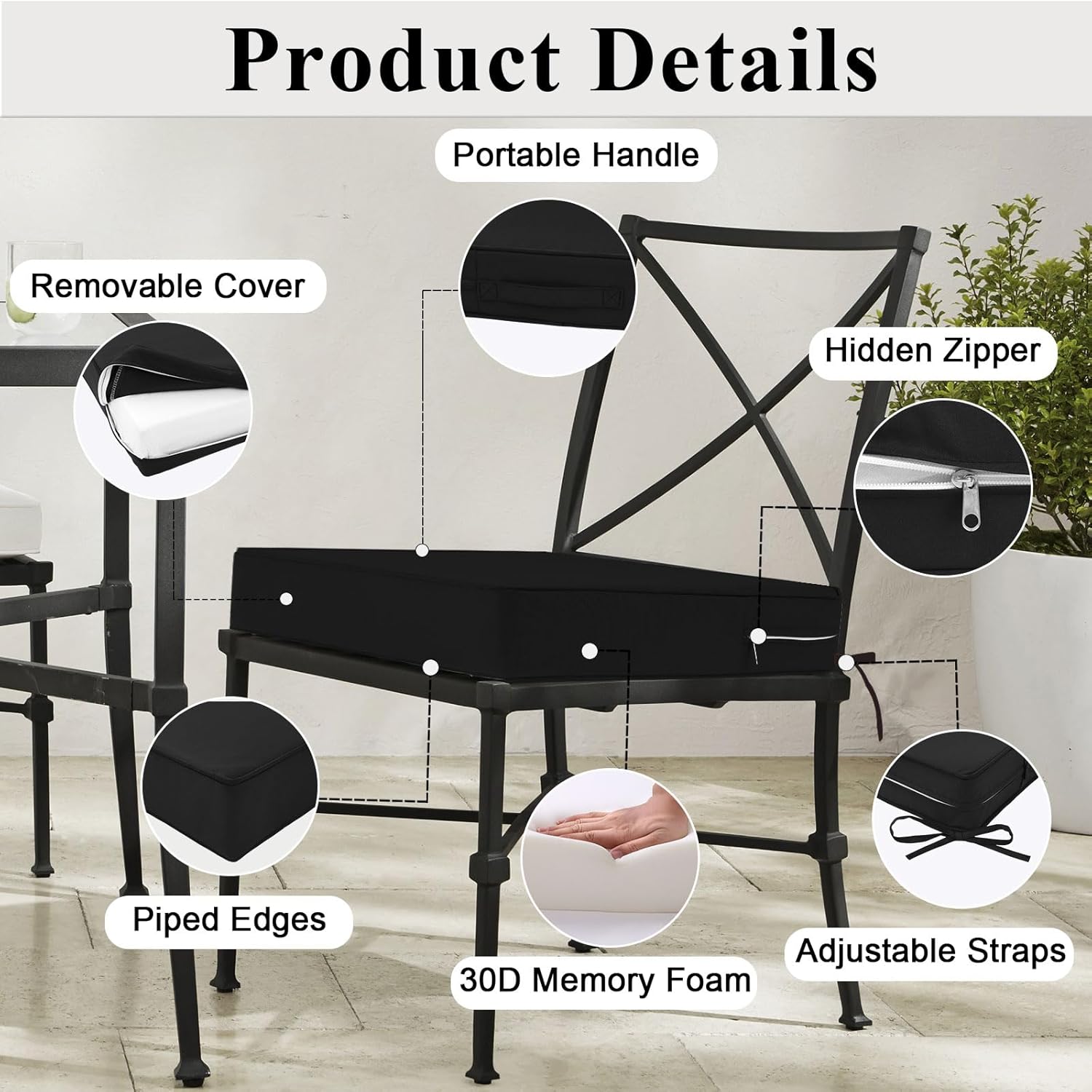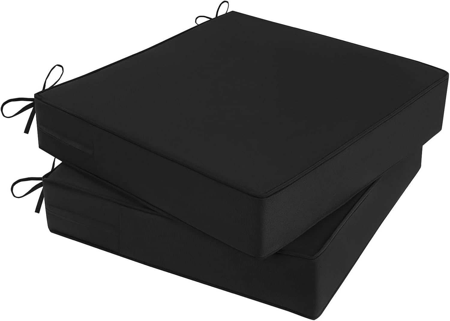 Outdoor Chair Cushions Set of 2 for Patio Furniture 24x24x4 Inch Waterproof Patio Chair Cushion 3 Year Color Fastness Square Elastic Foam Garden Couch Pads with Ties and Handle,Black