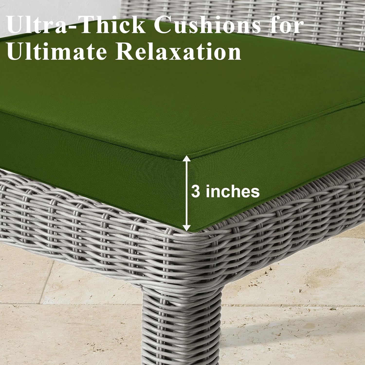 - HIGH RESILIENCE FOAM SUPPORT:We use thicker 3 inch high resilience premium foam, super soft and comfortable. Premium sofa level hardness provides excellent elastic support and effectively relieves pressure on your body. Reduce the pain of lumbar, back and hip. MJIAIDEA Outdoor furniture cushions are not easy to deform after sitting for a long time