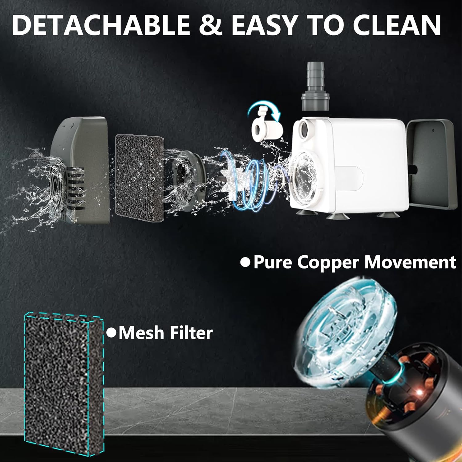 - 【STRONG POWER & QUIET OPERATION】This submersible water pump built-in pure copper motor, more powerful and durable. It’s ultra quiet, running at a ‘whisper’ level, produce no noise, giving you a quiet environment.