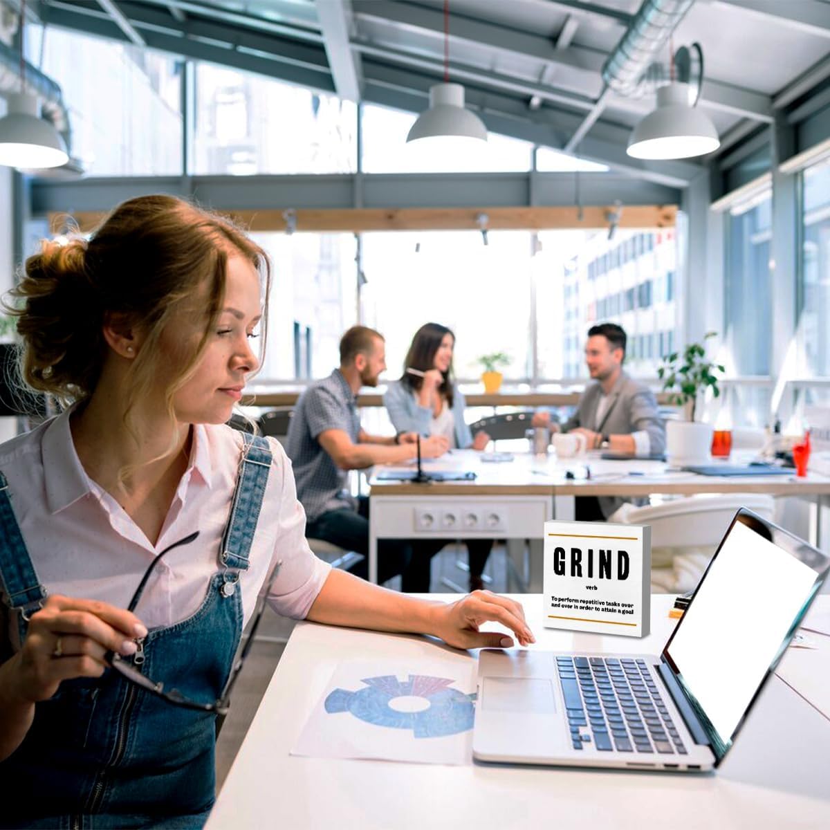 Grind Definition Entrepreneur White Wooden Box Sign, Inspirational Office Decor Decorative Table Shelf Desk Decor, Rustic Workplace Farmhouse Home Cubicle Decor Office Decorations Desk Accessories