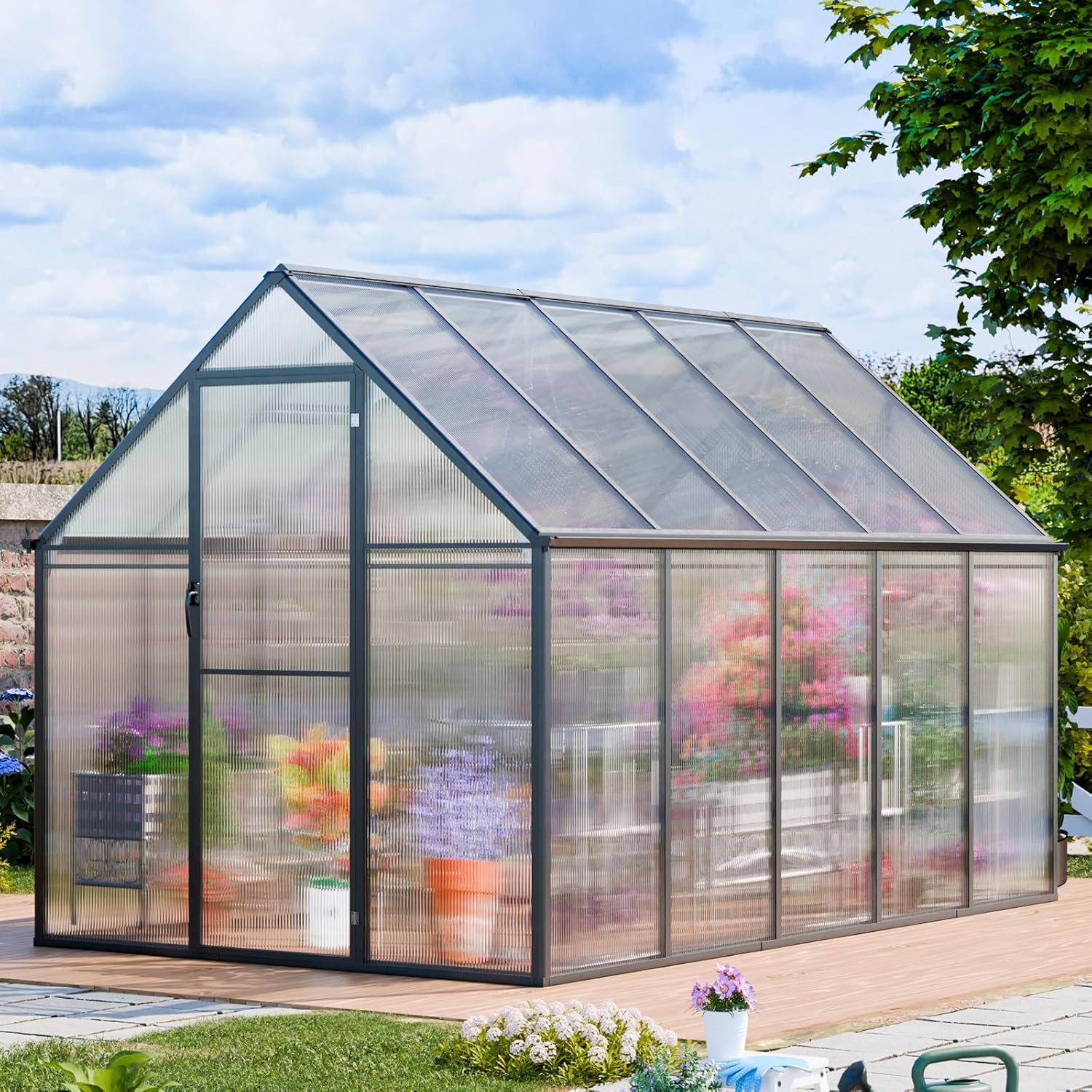 - Durable Panels: These 4mm twin-wall polycarbonate panels are nearly unbreakable. They allow 70% light transmission for optimal plant growth while blocking over 99.9% of harmful UV rays. Perfectly sized for your backyard, terrace, or garden, this greenhouse is great for casual gardeners and flower enthusiasts, providing ample space for plant preparation and growth