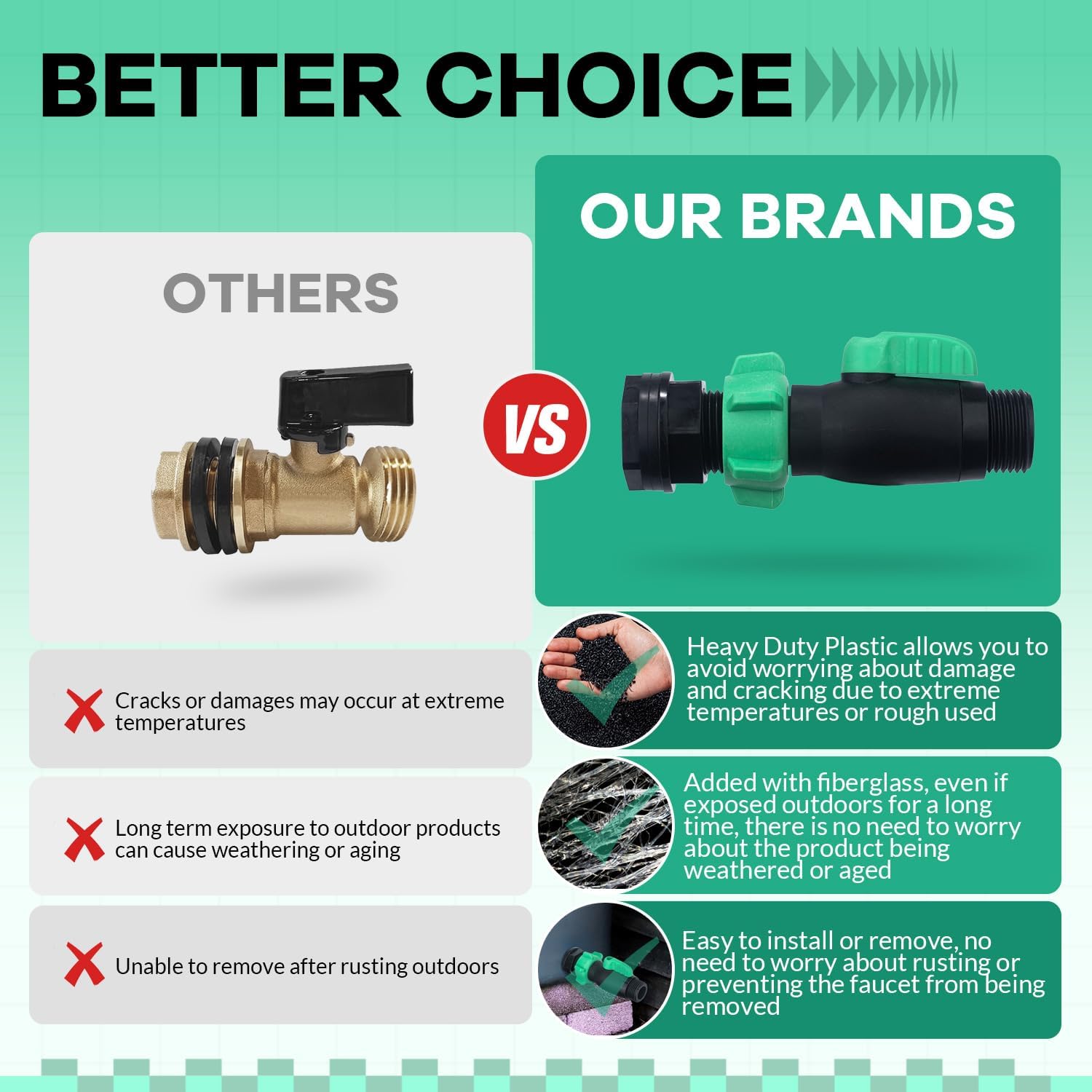 - Made of Heavy-Duty Plastic: Our rain barrel faucets is made of heavy-duty plastic, which has the characteristics of corrosion resistance, non rusting, weathering resistance, and aging resistance, and can be used outdoors for a long time.