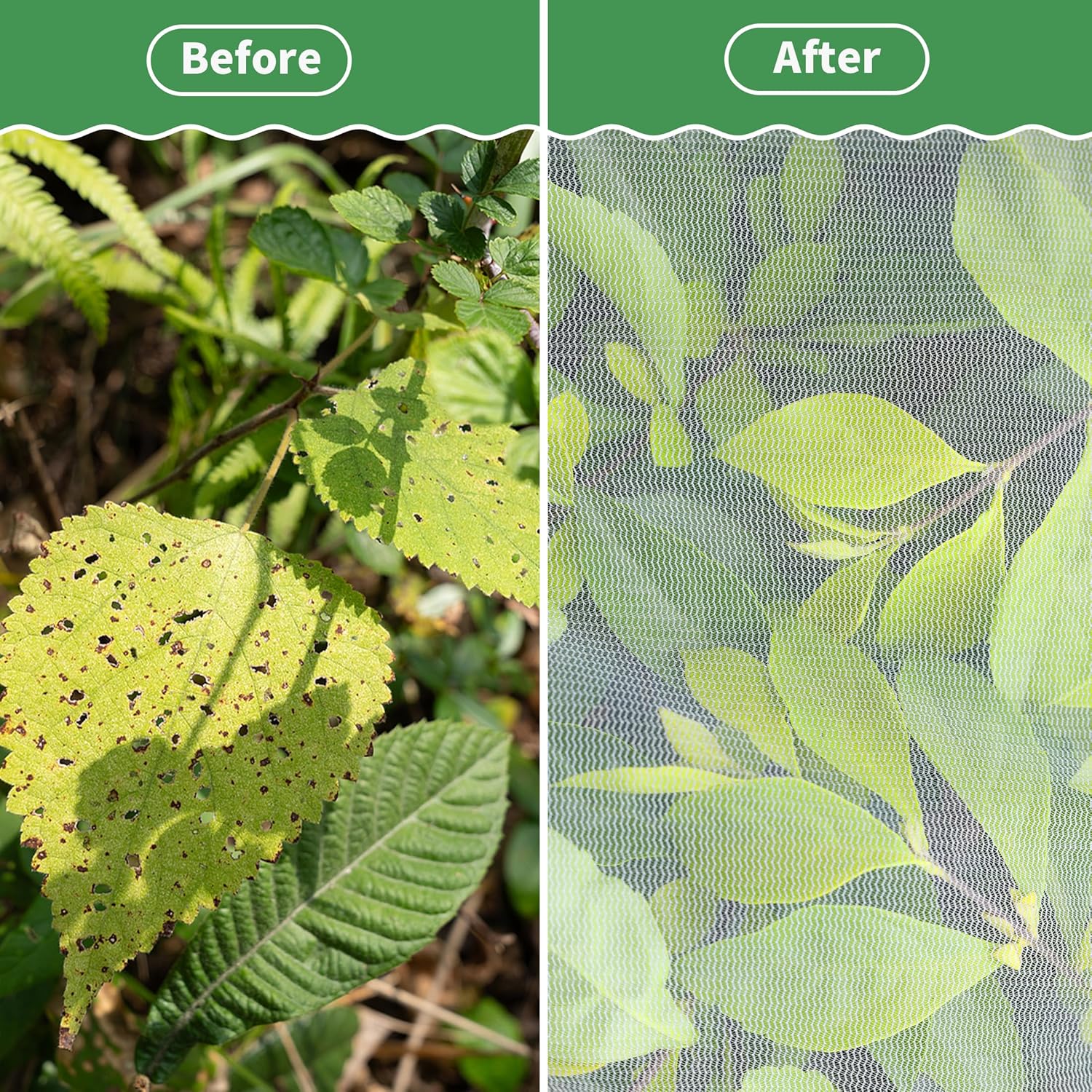 - Protect Your Harvest: Worry no more about wasted fruit with our bird netting! Effortlessly safeguard blueberry bushes, grapes, tomatoes, lemons, strawberries, oranges, and other fruit trees, vegetables, and shrubs from pesky insect, cicada, and bird damage.