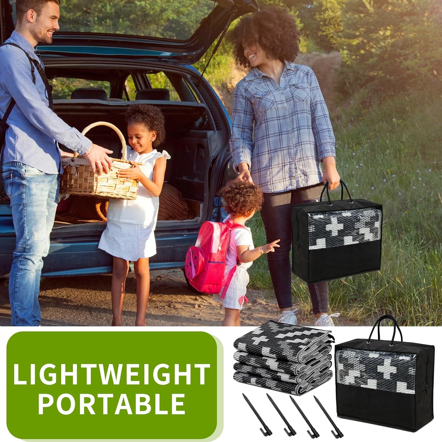 - Effortless Portability for On-The-Go Comfort :Say goodbye to bulky, hard-to-carry rugs. Our rugs lightweight design folds easily and comes with a convenient storage bag and sturdy handles, making transportation a breeze. Whether you're heading to a beach picnic, an open-air concert, or a spontaneous camping trip, our outdoor rug is your go-to for comfortable seating anywhere you choose to relax. Embrace the ease of taking comfort with you, wherever you roam
