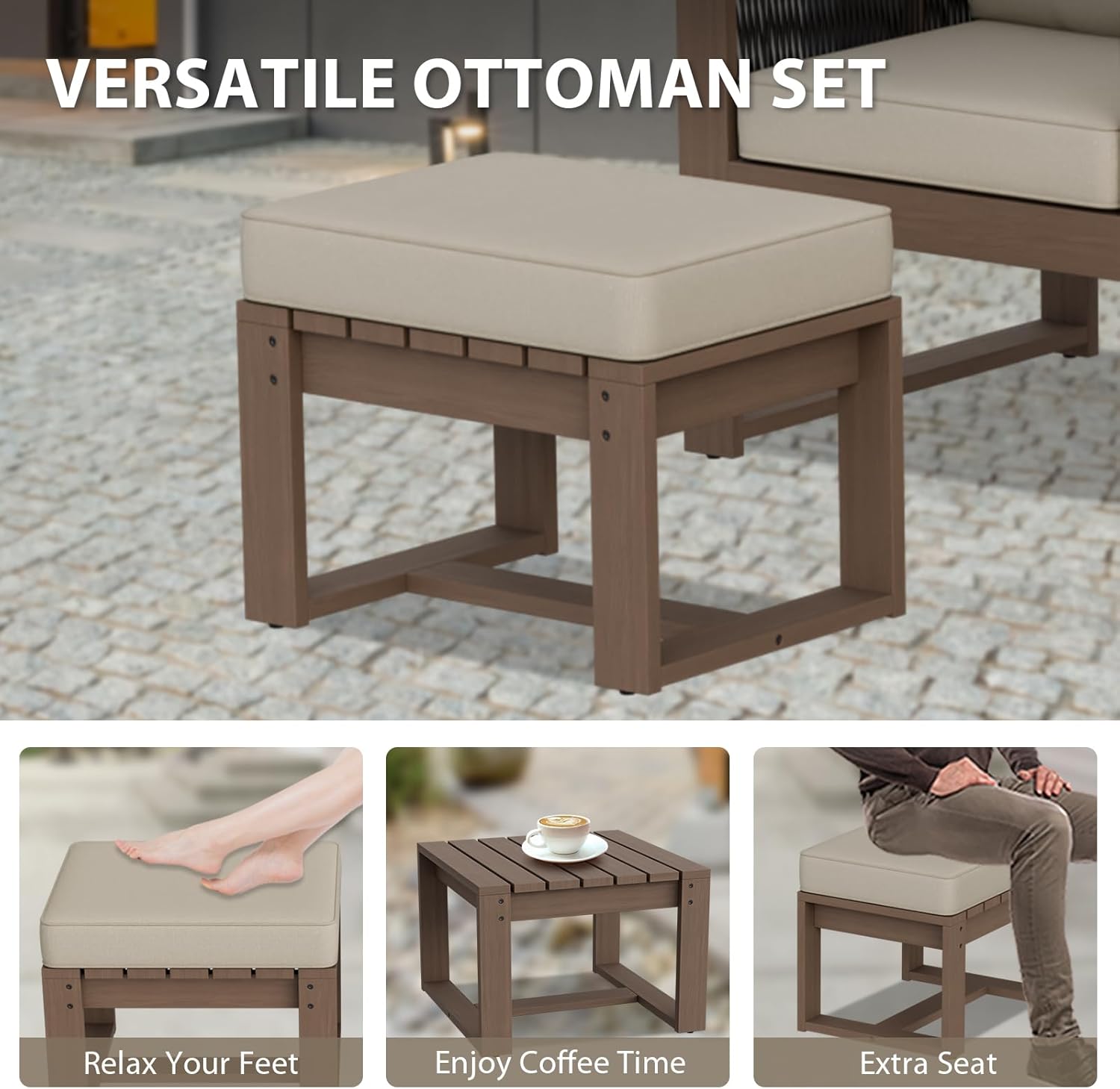 EAGLE PEAK Natural Wood Outdoor Patio Furniture, Cedar Furniture, Conversation Set, Outdoor Seating for Deck Patio Porch, Sofa 2 Chairs 2 Ottomans & Coffee Table, 6 Pieces, Brown/Beige