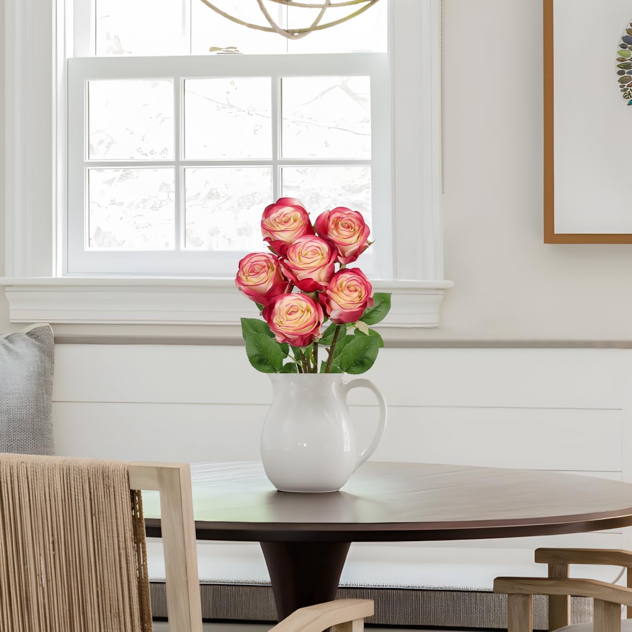 - Lifelike Appearance : Each artificial rose showcases delicately layered petals in a off white & red shade, enhanced by subtle tonal variations for a natural, elegant look. Ideal for those seeking high-quality, realistic rose bouquets to elevate home décor, weddings, or special events with a gentle touch of romance.