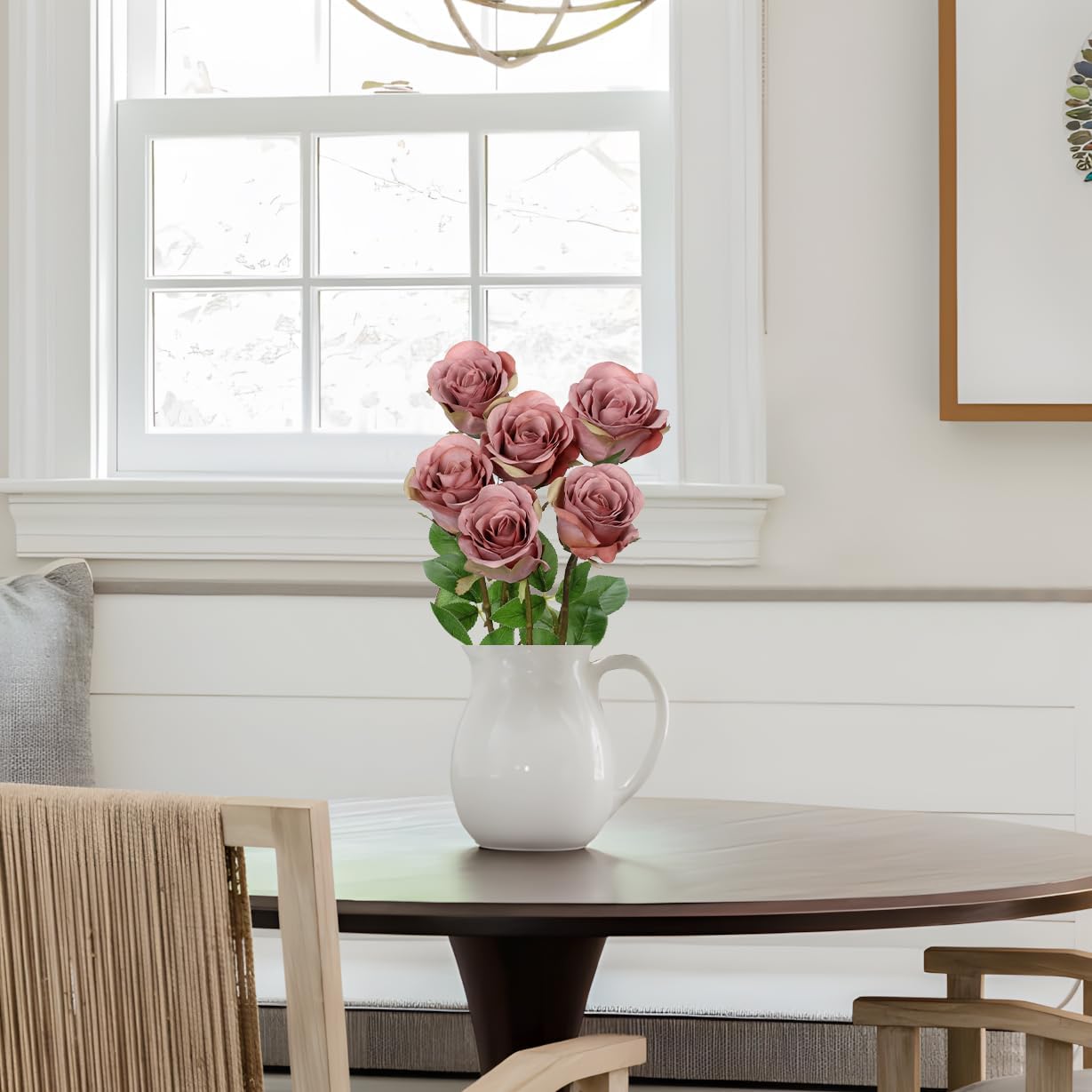 Briful Dusty Roses Pink Artificial Flowers– 6PCS 18.9" Faux Rose Silk Flowers with Long Stems Realistic Fake Rose Bouquet for DIY Wedding Arrangements Table Vase Centerpieces Home Event Decor