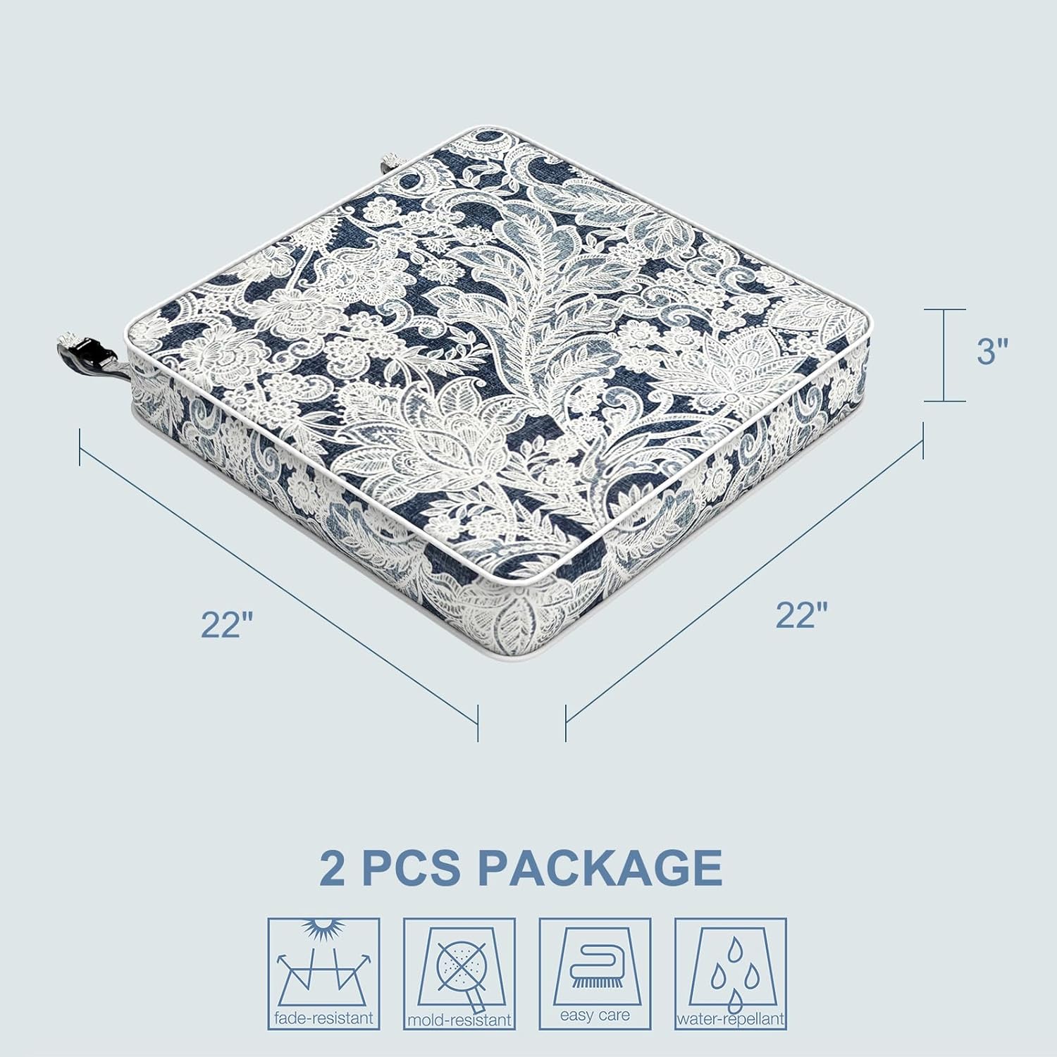 - PACKAGING: Includes 2-Pack outdoor chair cushions 22" x 22" x 3", perfect for patio chairs, garden sofas and more. Due to the vacuum compressed status, please allow 48 hours to restore thickness after opening the package