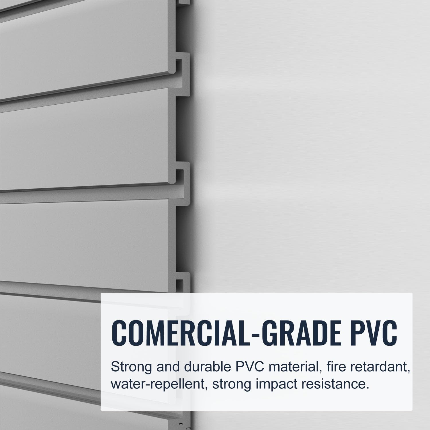Slatwall Panel Garage Organizer PVC Slatwall Heavy Duty Wall Mounted Rack, Interlocking Slat Wall Panels for Tool Organization Peg Board(Grey 4 x 8 ft)