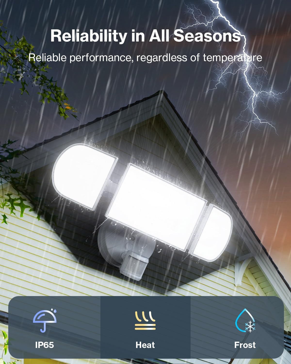 - Built to Last: With an IP65 waterproof rating, these motion detected lights withstand any weather β rain, snow, extreme temperatures, ensuring reliable performance year-round.