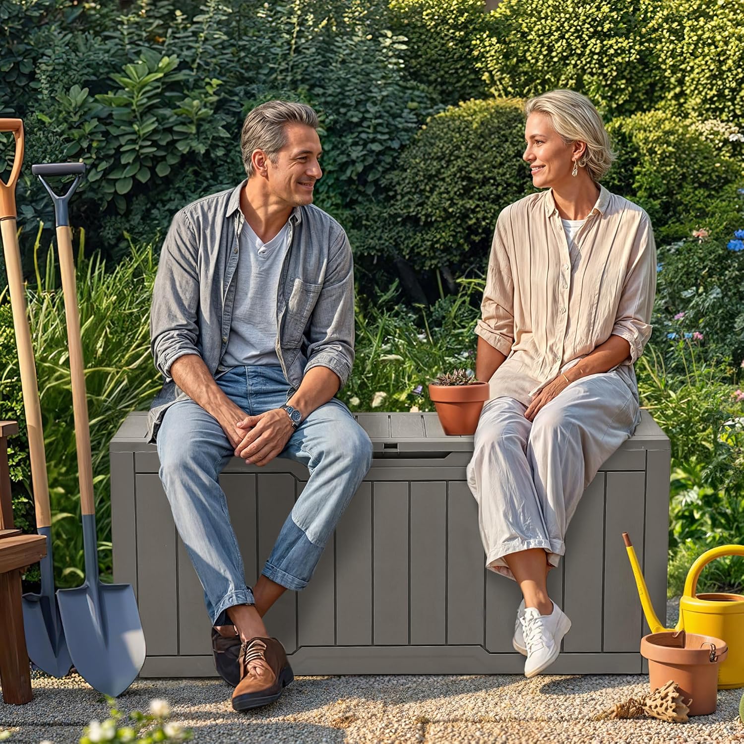 - Extra Seating: Doubling as a comfortable bench seat, this plastic deck box can support up to 485 pounds; Set it up in just 15-30 minutes, and enjoy its unique wood-grain texture that seamlessly blends with any patio or deck decor in no time
