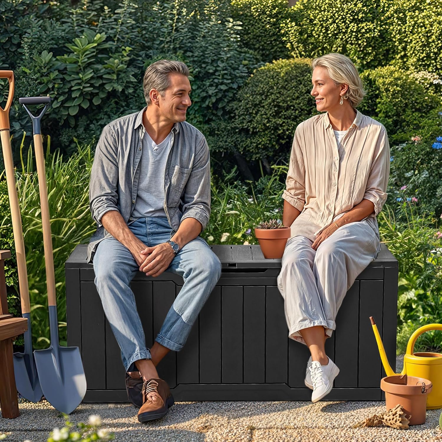 - Extra Seating: Doubling as a comfortable bench seat, this plastic deck box can support up to 485 pounds; Set it up in just 15-30 minutes, and enjoy its unique wood-grain texture that seamlessly blends with any patio or deck decor in no time