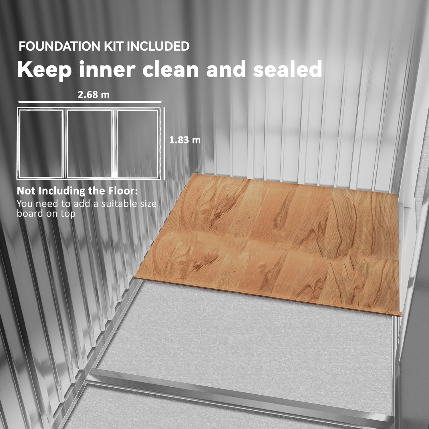 - Weather Ready: This metal shed has a water-safe galvanized steel frame, which makes it great for year-round outdoor use. It also has a foundation kit, which enhances stability by itself or keeps the space clean and sealed as a floor with the help of some wood boards.