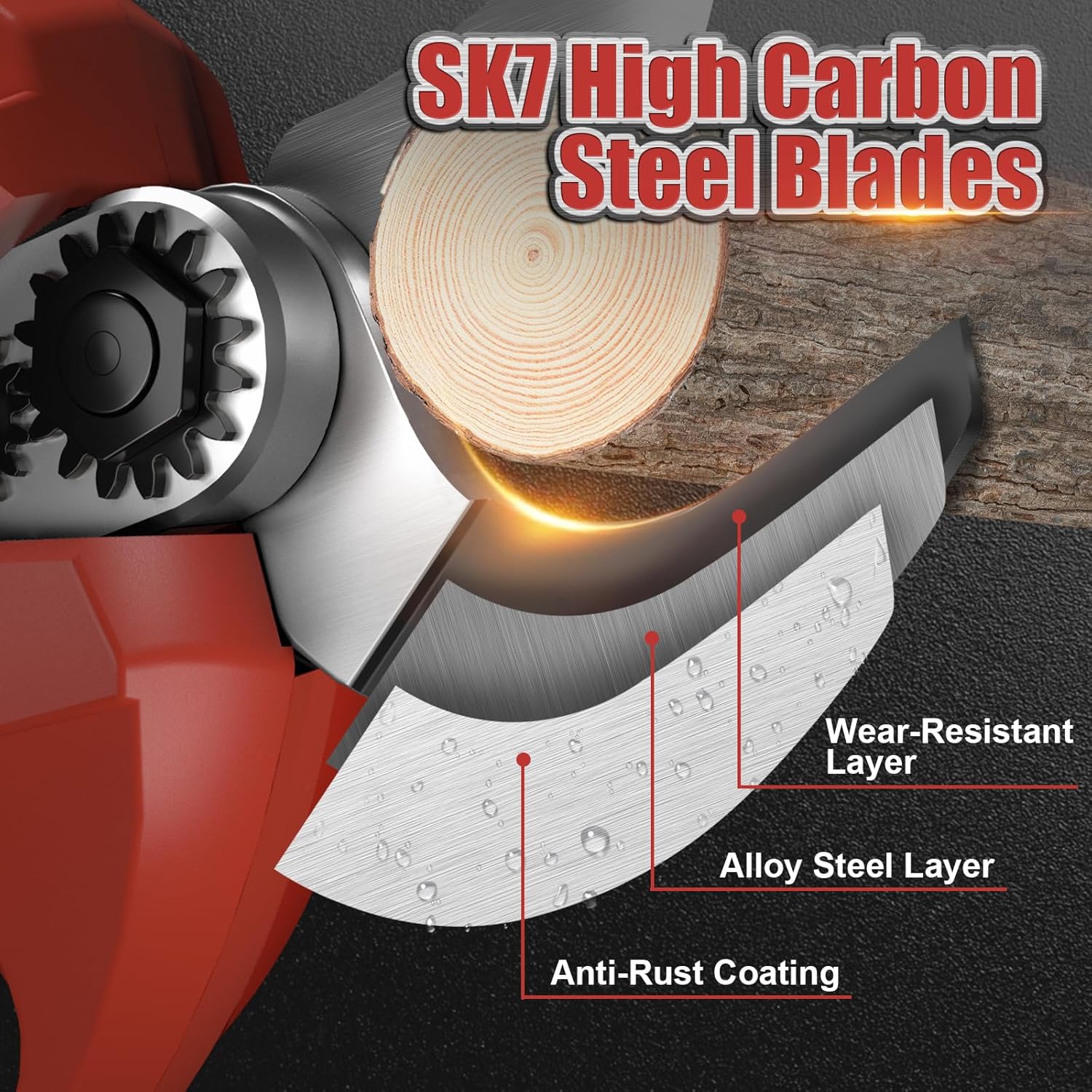 - UP TO 50mm(1.96inch) Cutting Diamter: Our pruning shears utilized SK7 high carbon steel blades, the electric tree trimmer effortlessly slices through branches with a thickness of up to 50mm(1.96inch). NOTE: long-press the power button and listen for a 'Beep' to turn on the device successfully.