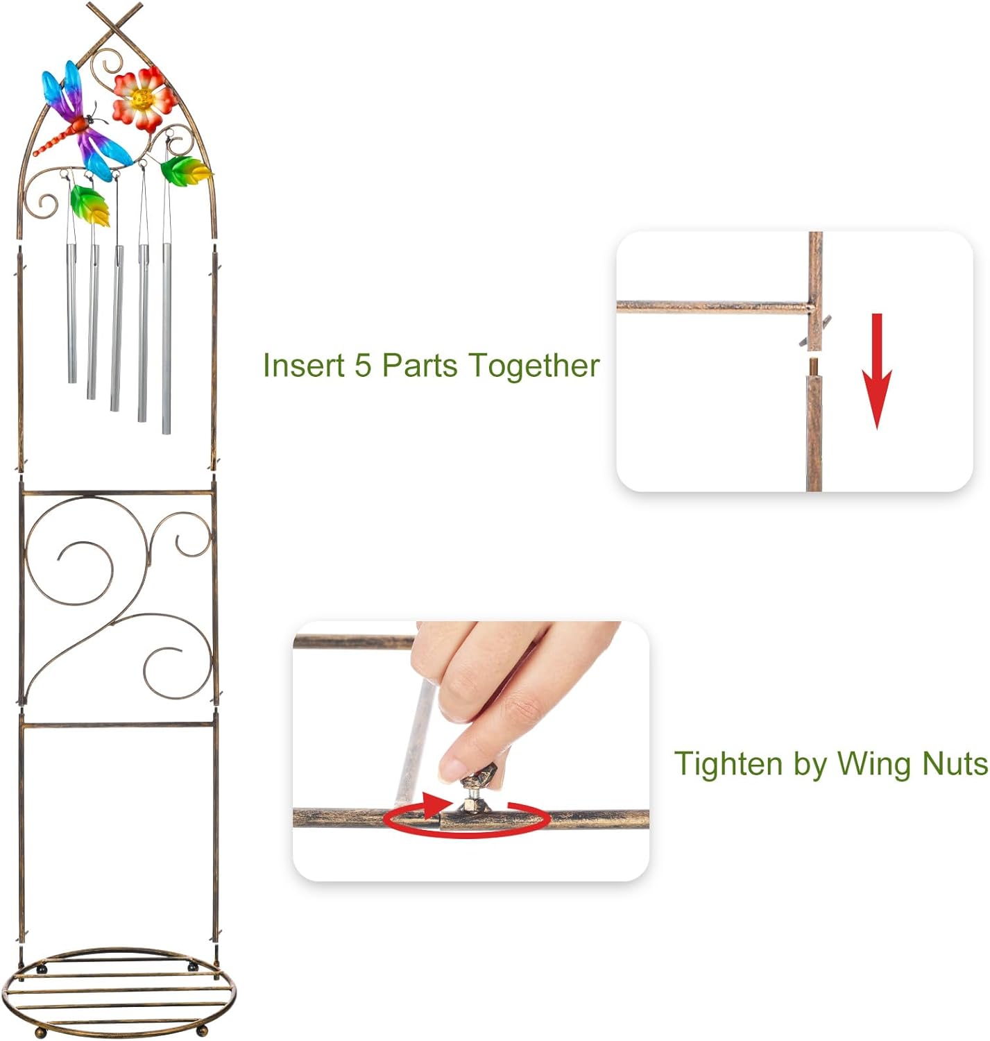 Plant Stands with Garden Trellis, 48” Metal Standing Wind Chimes Plant Pot Trellis with Dragonfly for Garden Patio Backyard Climbing Plants Outdoor Decor