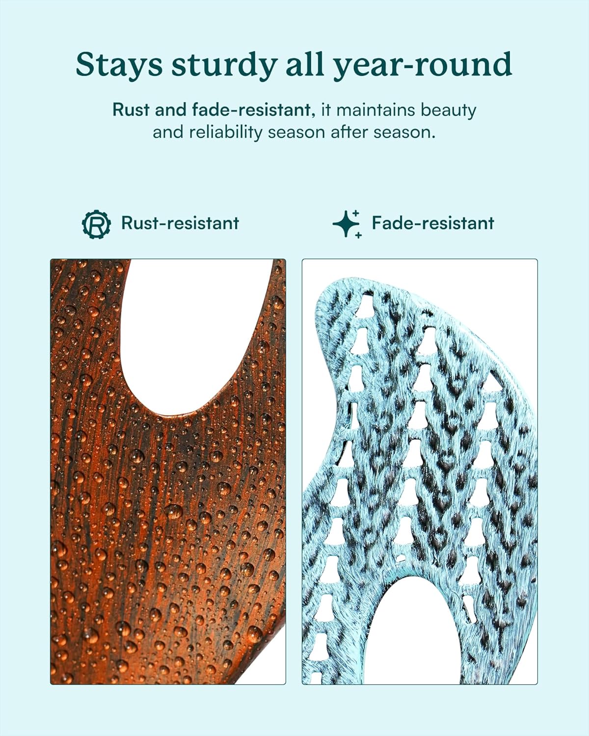 - Durable & Stable Garden Decor: The coating on the metal surface is rust and fade-resistant, ensuring long-term use. The thicker pole and solid 3-prong stake work together to provide four points of support, ensuring enhanced stability. It can better withstand high winds and resist bending.