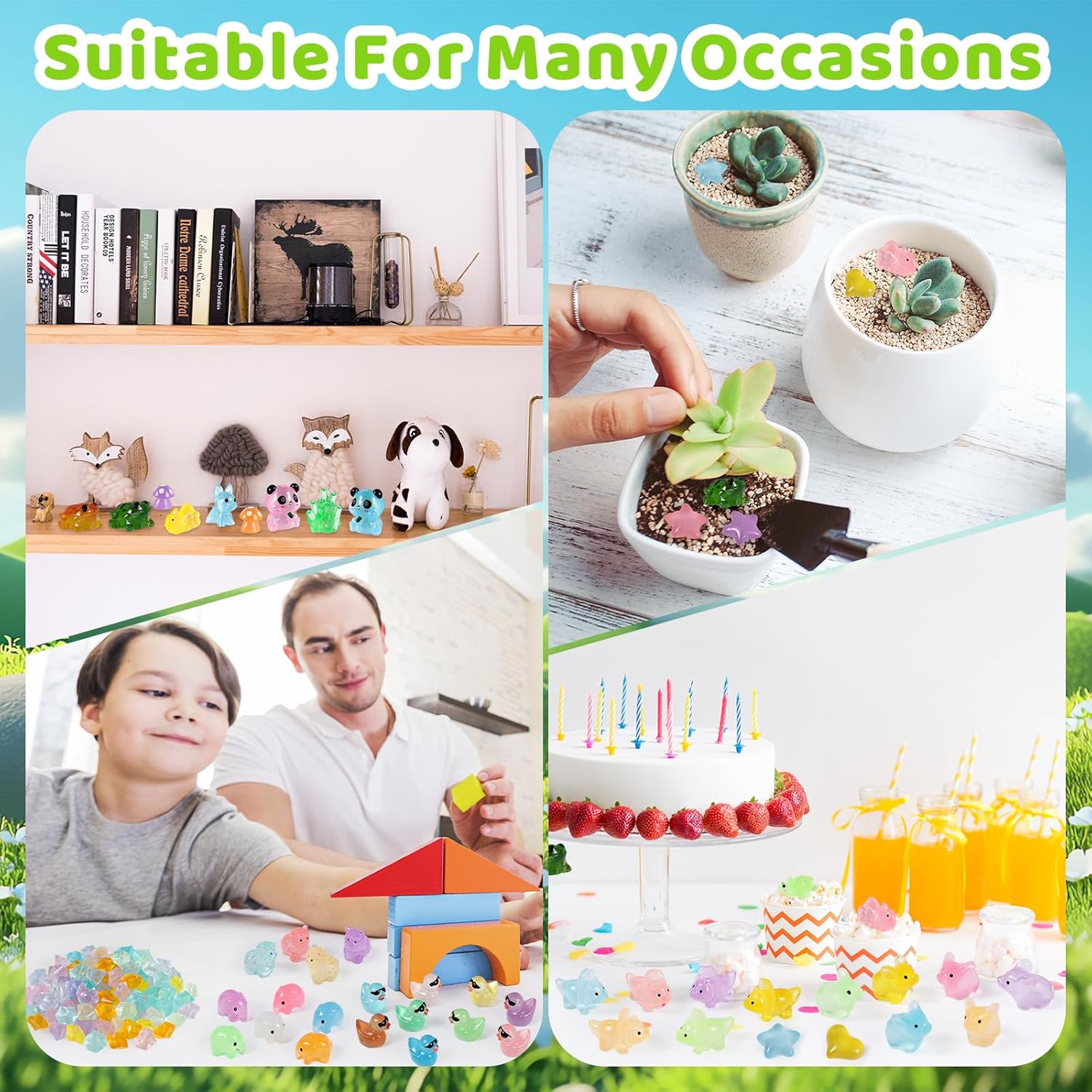 - Luminous Design: These mini resin animals have a rich variety of patterns and color designs, and can also glow in the dark. By absorbing light during the day, it can shine in the dark