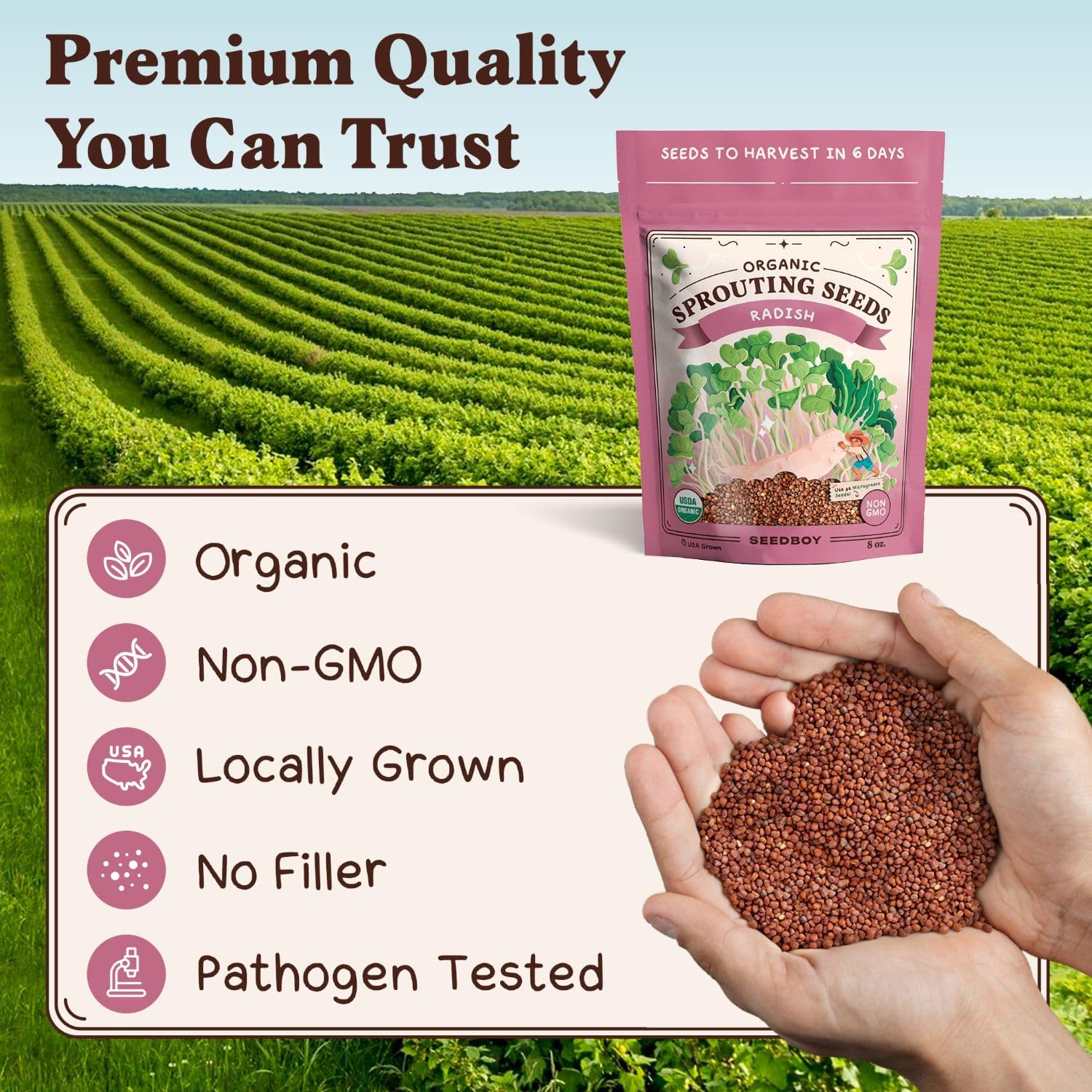 Seedboy Organic Radish Seeds for Sprouting - Non-GMO, USA Grown Microgreens Sprouting Seeds Mix - Makes 8 Quarts of Sprouts, 24 Servings (8 oz) (Daikon Radish)